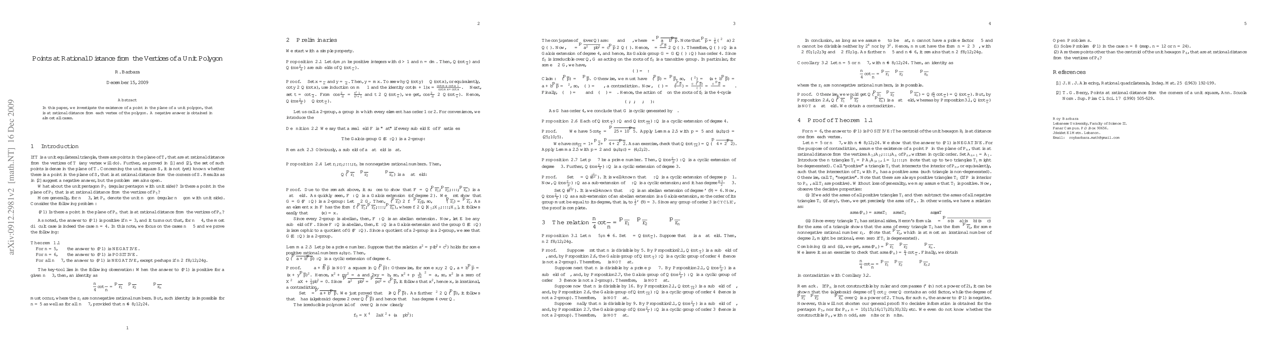 Researchers investigated if a point can exist at rational distance from each vertex of a unit polygon, finding almost all cases have no such point.