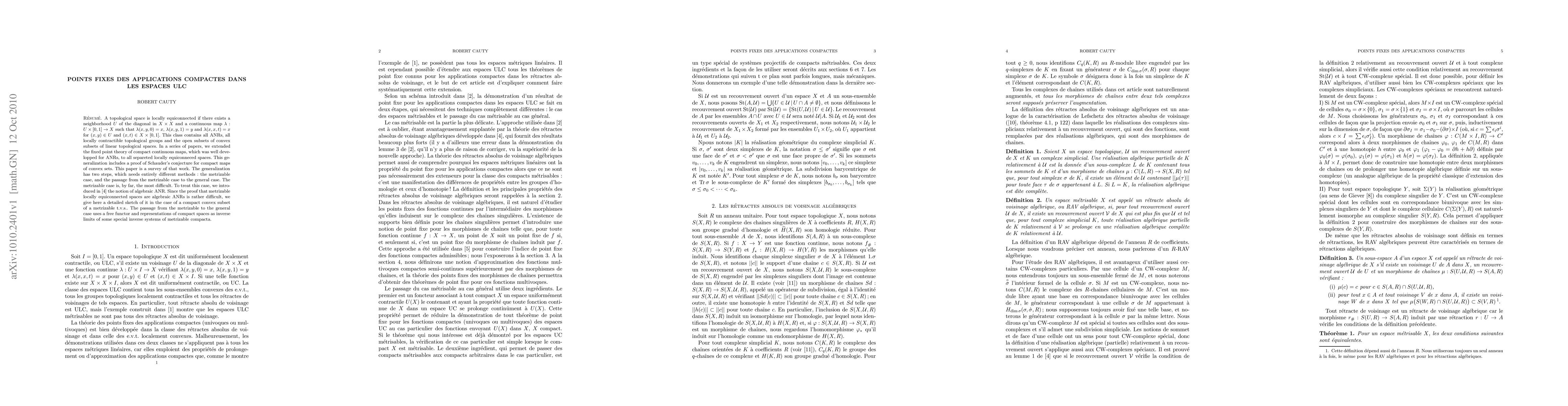 A topological space is locally equiconnected if there exists a neighborhood $U$ of the diagonal in $X\times X$ and a continuous map $\lambda:U\times[0,1]\to X$ such that $\lambda(x,y,0)=x$, $\lambda(x,y,1)=y$ et $\lambda(x,x,t)=x$ for $(x,y)\in U$ and $(x,t)\in X\times[0,1]$. This class contains all ANRs, all locally contractible topological groups and the open subsets of convex subsets of linear topological spaces. In a series of papers, we extended the fixed point theory of compact continuous maps, which was well developped for ANRs, to all separeted locally equiconnected spaces. This generalization includes a proof of Schauder's conjecture for compact maps of convex sets. This paper is a survey of that work. The generalization has two steps: the metrizable case, and the passage from the metrizable case to the general case. The metrizable case is, by far, the most difficult. To treat this case, we introduced in [4] the notion of algebraic ANR. Since the proof that metrizable locally equiconnected spaces are algebraic ANRs is rather difficult, we give here a detaled sketch of it in the case of a compact convex subset of a metrizable t.v.s.. The passage from the metrizable case to the general case uses a free functor and representations of compact spaces as inverse limits of some special inverse systems of metrizable compacta.