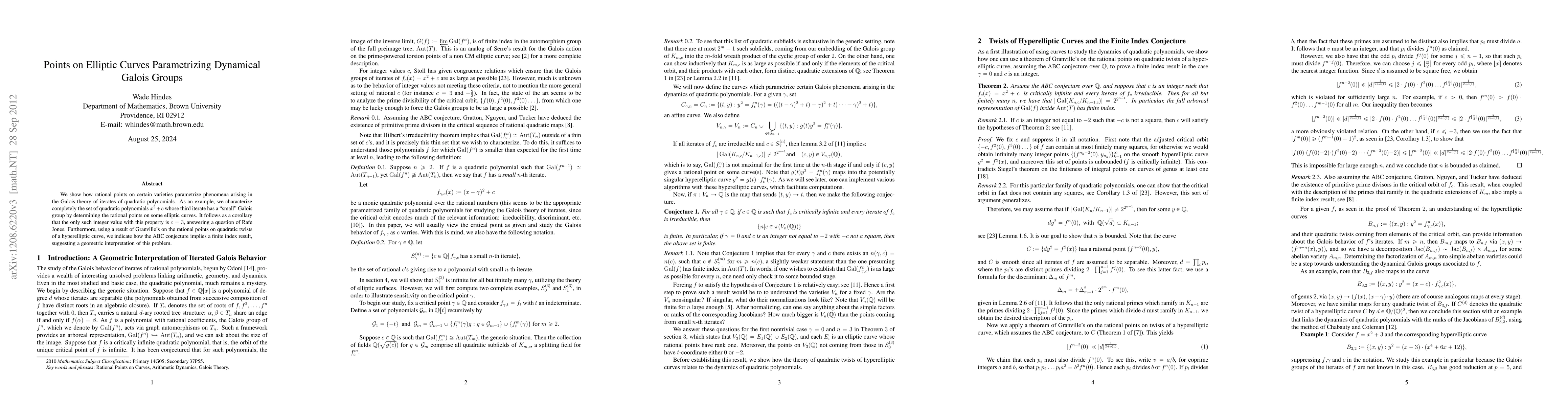 This paper demonstrates how rational points on elliptic curves parametrize the Galois groups of the iterates of quadratic polynomials, specifically identifying the rational points that characterize the third iterates of $x^2+c$ with "small" Galois groups. The only integer value $c$ with this property is $c=3$, resolving a question posed by Rafe Jones.