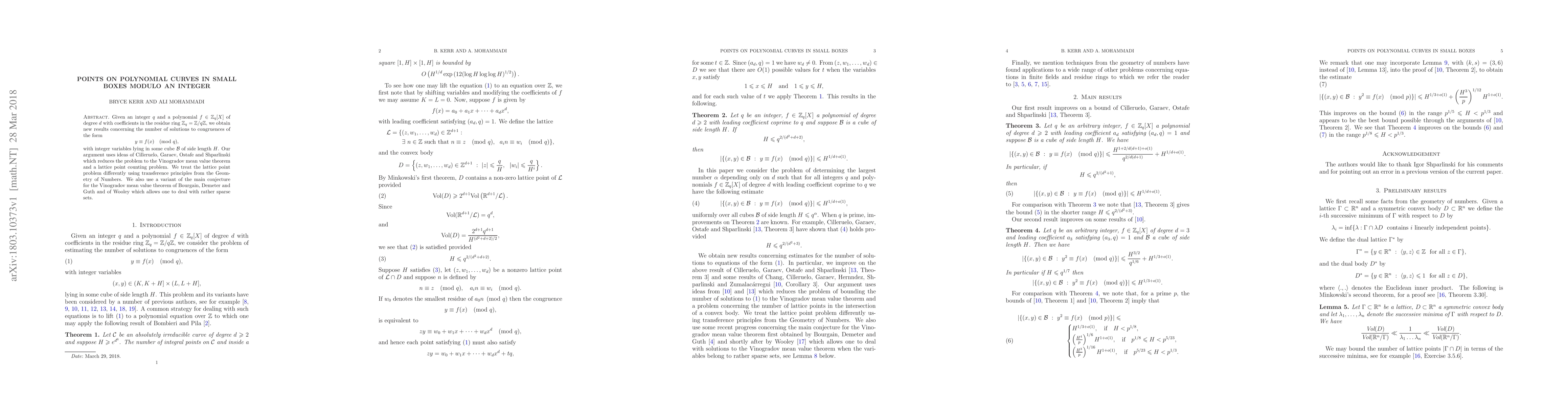 Given an integer $q$ and a polynomial $f\in \mathbb Z_{q}[X]$ of degree $d$ with coefficients in the residue ring $\mathbb Z_q=\mathbb Z/q\mathbb Z,$ we obtain new results concerning the number of solutions to congruences of the form $$y\equiv f(x) \pmod{q},$$ with integer variables lying in some cube $\mathcal B$ of side length $H$. Our argument uses ideas of Cilleruelo, Garaev, Ostafe and Shparlinski which reduces the problem to the Vinogradov mean value theorem and a lattice point counting problem. We treat the lattice point problem differently using transference principles from the Geometry of Numbers. We also use a variant of the main conjecture for the Vinogradov mean value theorem of Bourgain, Demeter and Guth and of Wooley which allows one to deal with rather sparse sets.