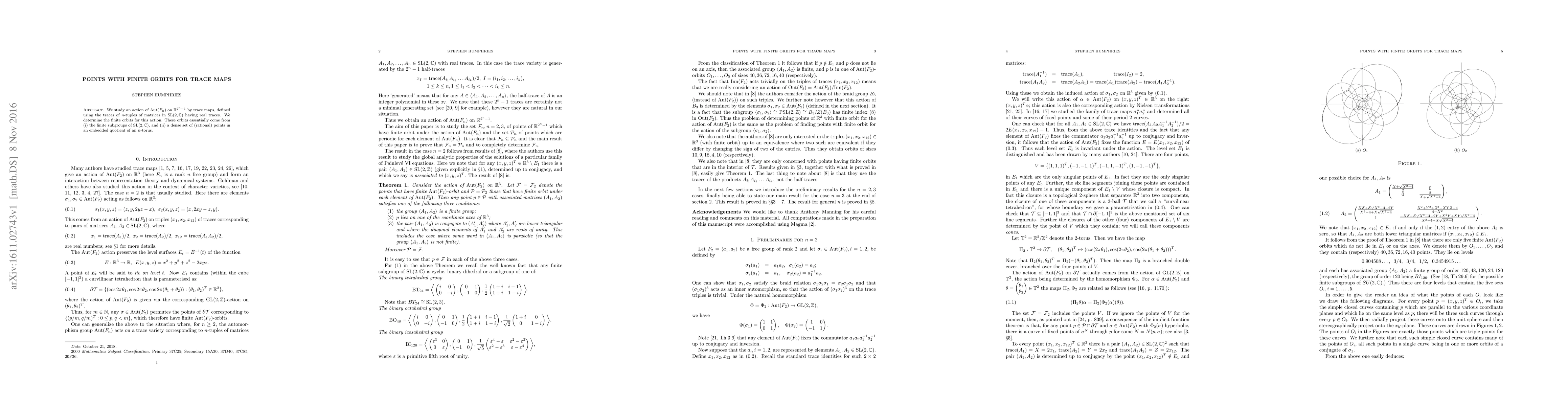 Researchers studied the action of Aut(F_n) on R^(2^n-1) via trace maps, identifying finite orbits related to finite subgroups of SL(2,C) and a dense set of rational points in an n-torus.