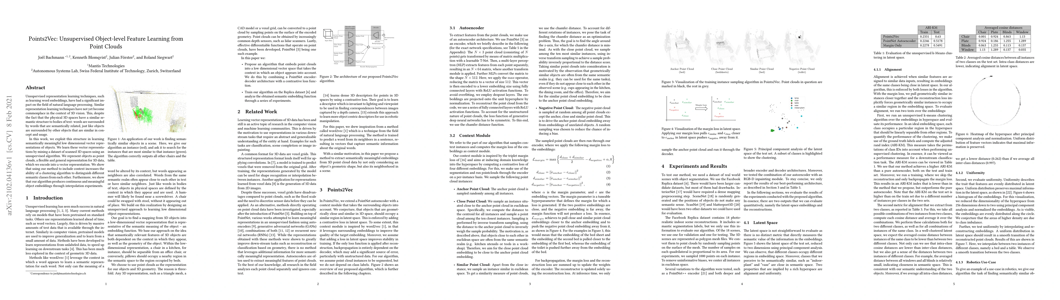 Unsupervised representation learning techniques, such as learning word embeddings, have had a significant impact on the field of natural language processing. Similar representation learning techniques have not yet become commonplace in the context of 3D vision. This, despite the fact that the physical 3D spaces have a similar semantic structure to bodies of text: words are surrounded by words that are semantically related, just like objects are surrounded by other objects that are similar in concept and usage. In this work, we exploit this structure in learning semantically meaningful low dimensional vector representations of objects. We learn these vector representations by mining a dataset of scanned 3D spaces using an unsupervised algorithm. We represent objects as point clouds, a flexible and general representation for 3D data, which we encode into a vector representation. We show that using our method to include context increases the ability of a clustering algorithm to distinguish different semantic classes from each other. Furthermore, we show that our algorithm produces continuous and meaningful object embeddings through interpolation experiments.