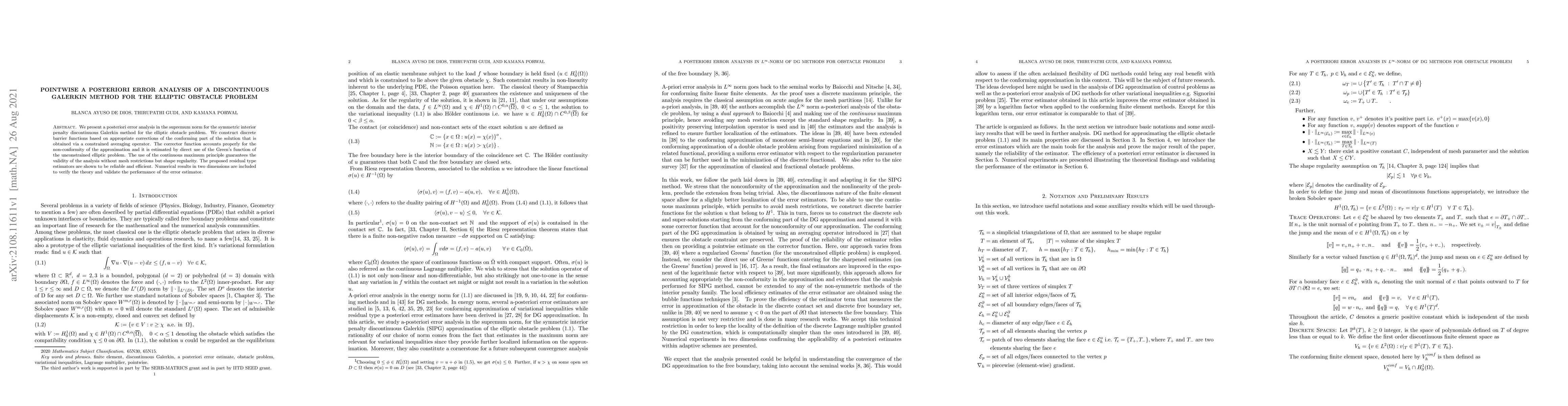 This paper presents a posteriori error analysis for the discontinuous Galerkin method applied to the elliptic obstacle problem, constructing discrete barrier functions to correct the conforming solution. The analysis is reliable and efficient, validated by numerical results in two dimensions.