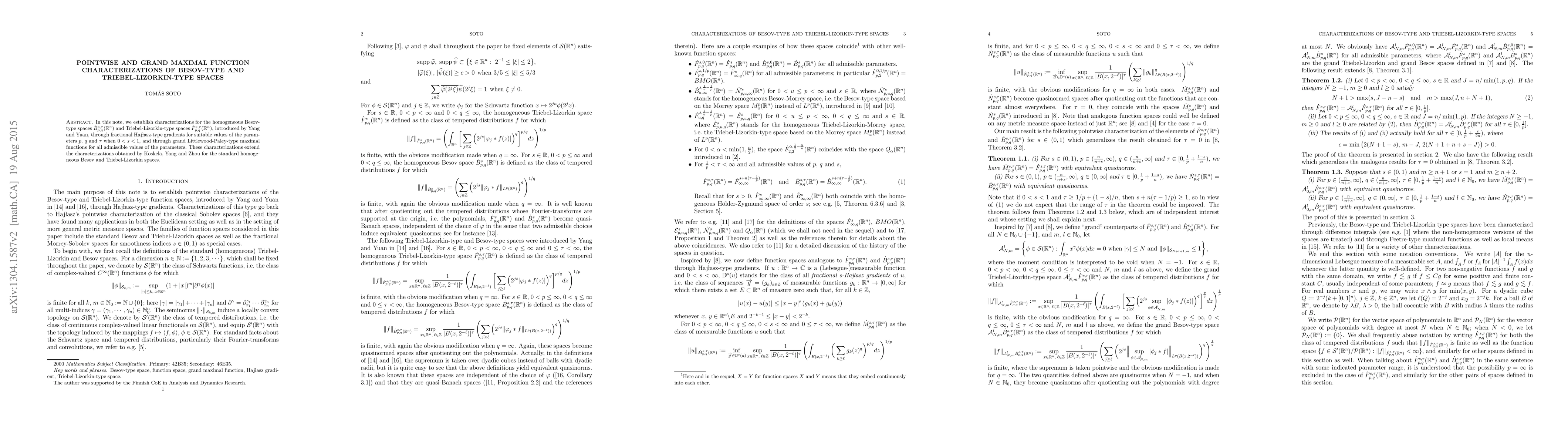 In this note, we establish characterizations for the homogeneous Besov-type spaces $\dot{B}^{s,\tau}_{p,q}(\mathbb{R}^n)$ and Triebel-Lizorkin-type spaces $\dot{F}^{s,\tau}_{p,q}(\mathbb{R}^n)$, introduced by Yang and Yuan, through fractional Haj\l asz-type gradients for suitable values of the parameters $p$, $q$ and $\tau$ when $0 < s < 1$, and through grand Littlewood-Paley-type maximal functions for all admissible values of the parameters. These characterizations extend the characterizations obtained by Koskela, Yang and Zhou for the standard homogeneous Besov and Triebel-Lizorkin spaces.