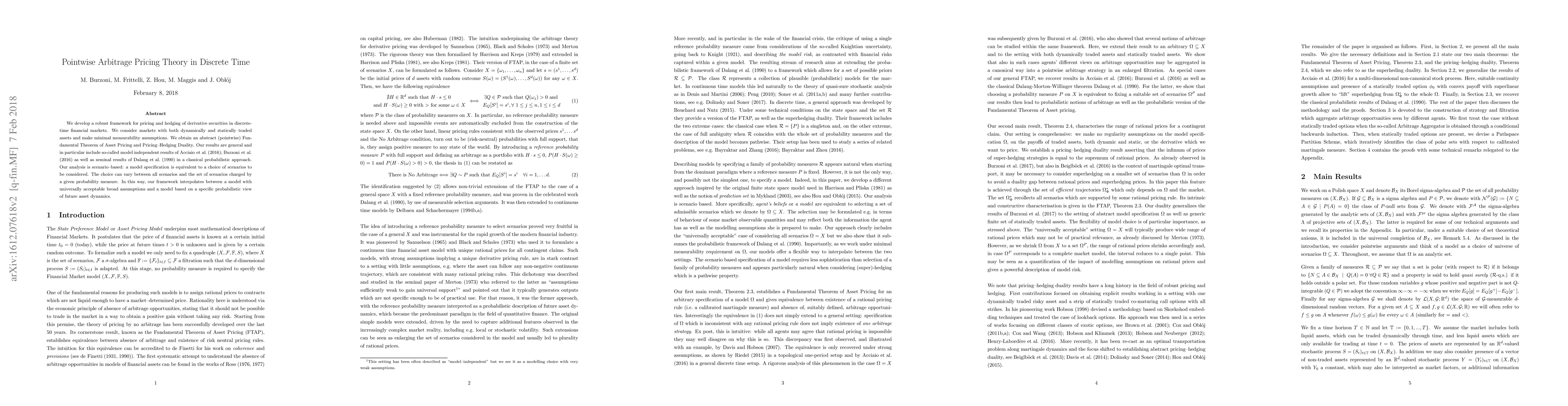 We develop a robust framework for pricing and hedging of derivative securities in discrete-time financial markets. We consider markets with both dynamically and statically traded assets and make minimal measurability assumptions. We obtain an abstract (pointwise) Fundamental Theorem of Asset Pricing and Pricing--Hedging Duality. Our results are general and in particular include so-called model independent results of Acciao et al. (2016), Burzoni et al. (2016) as well as seminal results of Dalang et al. (1990) in a classical probabilistic approach. Our analysis is scenario--based: a model specification is equivalent to a choice of scenarios to be considered. The choice can vary between all scenarios and the set of scenarios charged by a given probability measure. In this way, our framework interpolates between a model with universally acceptable broad assumptions and a model based on a specific probabilistic view of future asset dynamics.