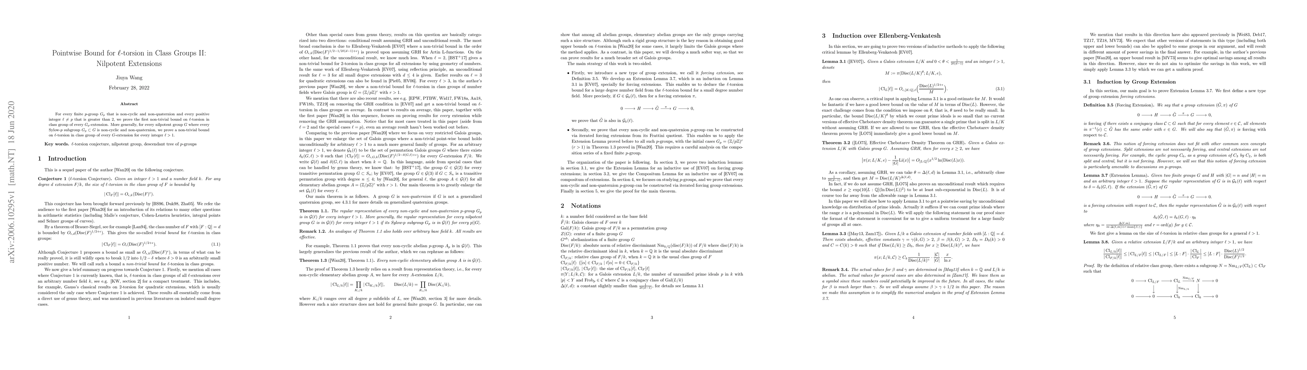 This paper establishes the first non-trivial pointwise bound for $\ell$-torsion in class groups for non-cyclic, non-quaternion $p$-groups $G_p$ and for nilpotent groups $G$ with specific Sylow-$p$ subgroups, valid for any $\ell \neq p$ and $\ell > 2$. The result extends to all $G$-extensions.