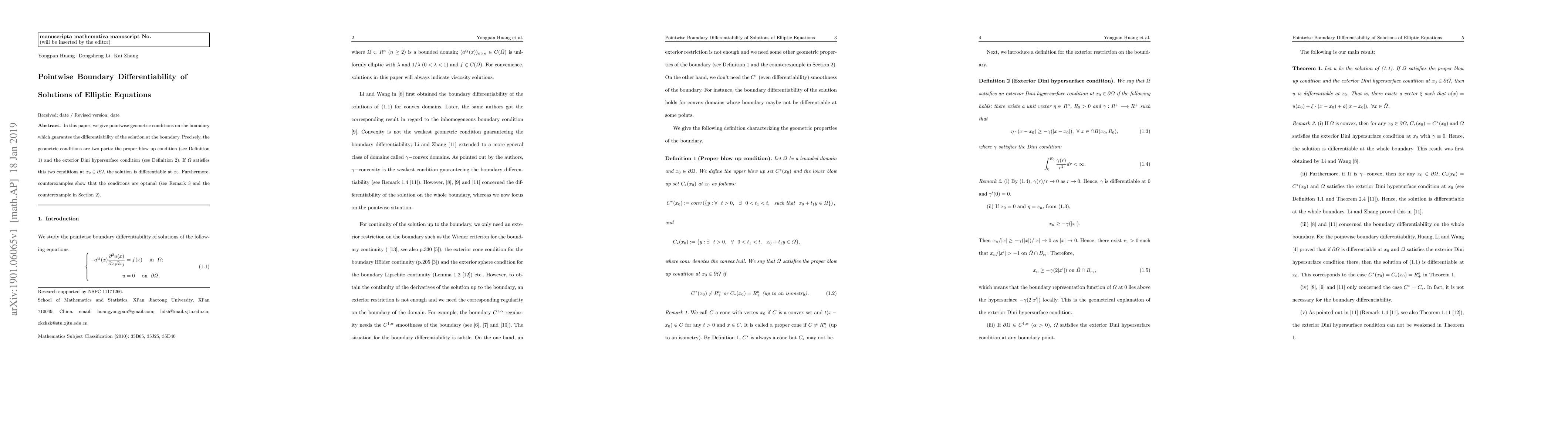 This paper provides conditions for guaranteeing the differentiability of solutions to elliptic equations at their boundaries, with optimal geometric requirements.