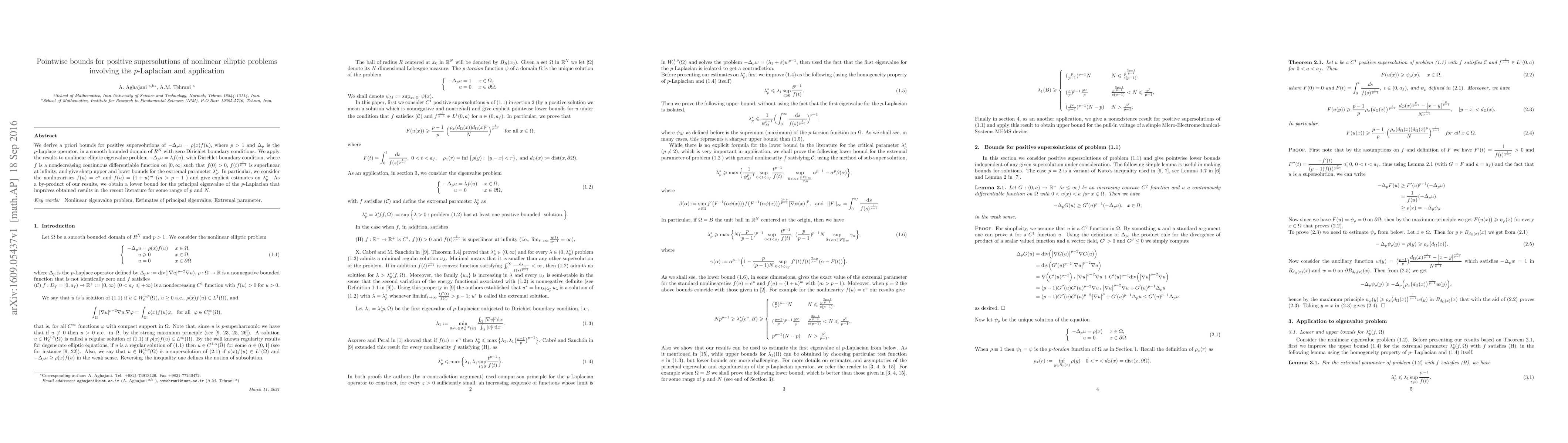 This paper derives a priori bounds for positive supersolutions of nonlinear elliptic problems involving the $p$-Laplacian and applies these bounds to determine sharp upper and lower bounds for the extremal eigenvalue parameter $\lambda_{p}^{*}$. It provides explicit estimates for specific nonlinearities and improves existing lower bounds for the principal eigenvalue of the $p$-Laplacian.