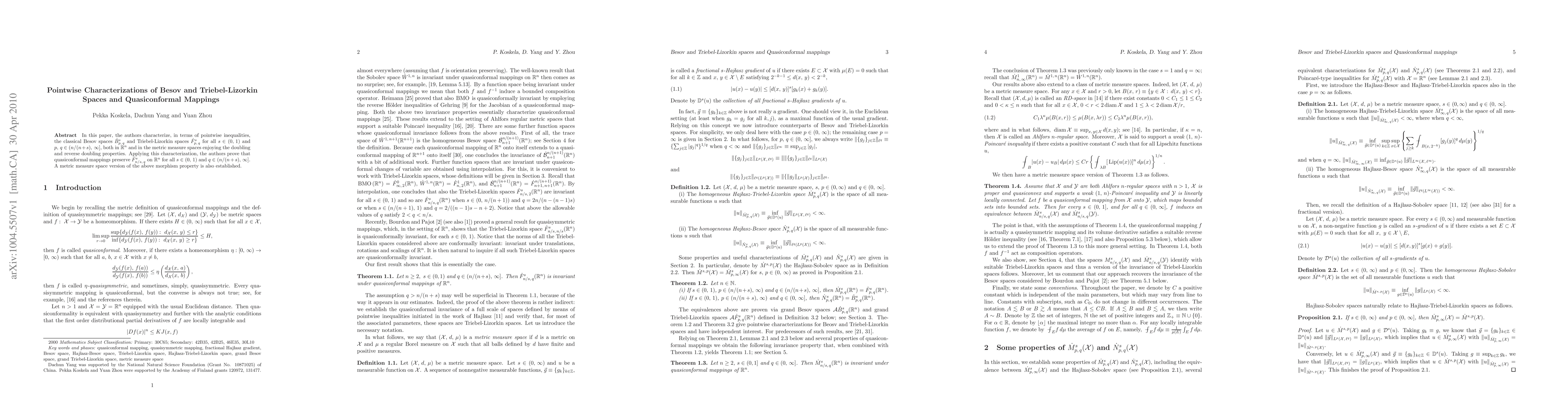 In this paper, the authors characterize, in terms of pointwise inequalities, the classical Besov spaces $\dot B^s_{p,\,q}$ and Triebel-Lizorkin spaces $\dot F^s_{p,\,q}$ for all $s\in(0,\,1)$ and $p,\,q\in(n/(n+s),\,\infty],$ both in ${\mathbb R}^n$ and in the metric measure spaces enjoying the doubling and reverse doubling properties. Applying this characterization, the authors prove that quasiconformal mappings preserve $\dot F^s_{n/s,\,q}$ on $\rn$ for all $s\in(0,\,1)$ and $q\in(n/(n+s),\,\infty]$. A metric measure space version of the above morphism property is also established.
