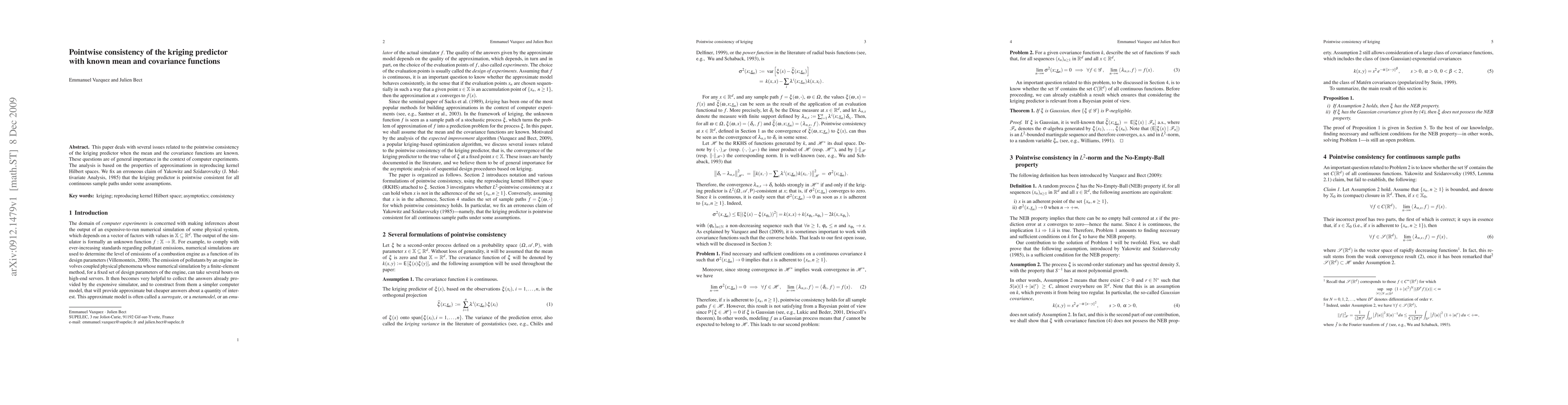 This paper corrects a previous misconception about kriging predictor consistency, clarifying its pointwise consistency under known mean and covariance functions using reproducing kernel Hilbert spaces. It debunks an overgeneralized claim by Yakowitz and Szidarovszky, providing a more precise analysis crucial for understanding computer experiments.