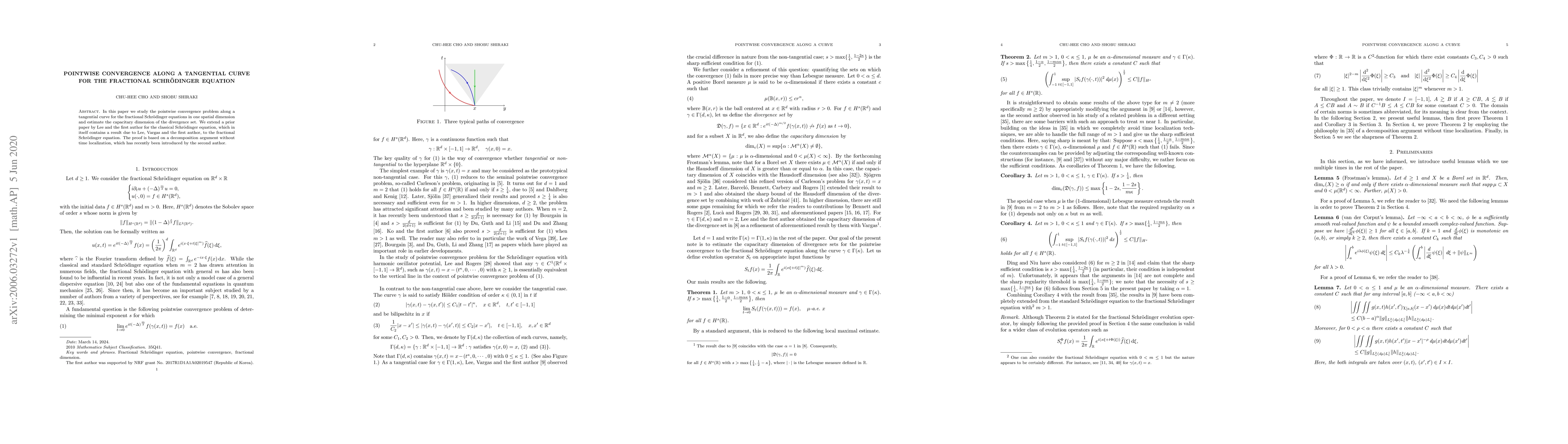 This paper investigates the pointwise convergence along a tangential curve for fractional Schrödinger equations in one dimension, estimating the capacitary dimension of the divergence set. The authors extend previous results for the classical Schrödinger equation using a decomposition method without time localization.