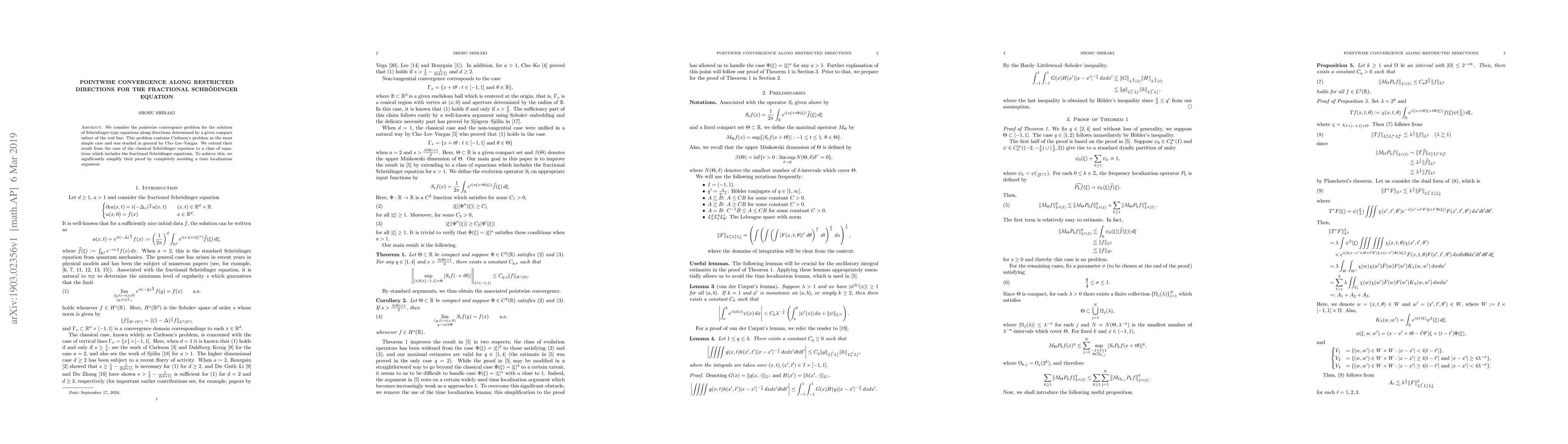 We consider the pointwise convergence problem for the solution of Schr\"odinger-type equations along directions determined by a given compact subset of the real line. This problem contains Carleson's problem as the most simple case and was studied in general by Cho--Lee--Vargas. We extend their result from the case of the classical Schr\"odinger equation to a class of equations which includes the fractional Schr\"odinger equations. To achieve this, we significantly simplify their proof by completely avoiding a time localization argument.