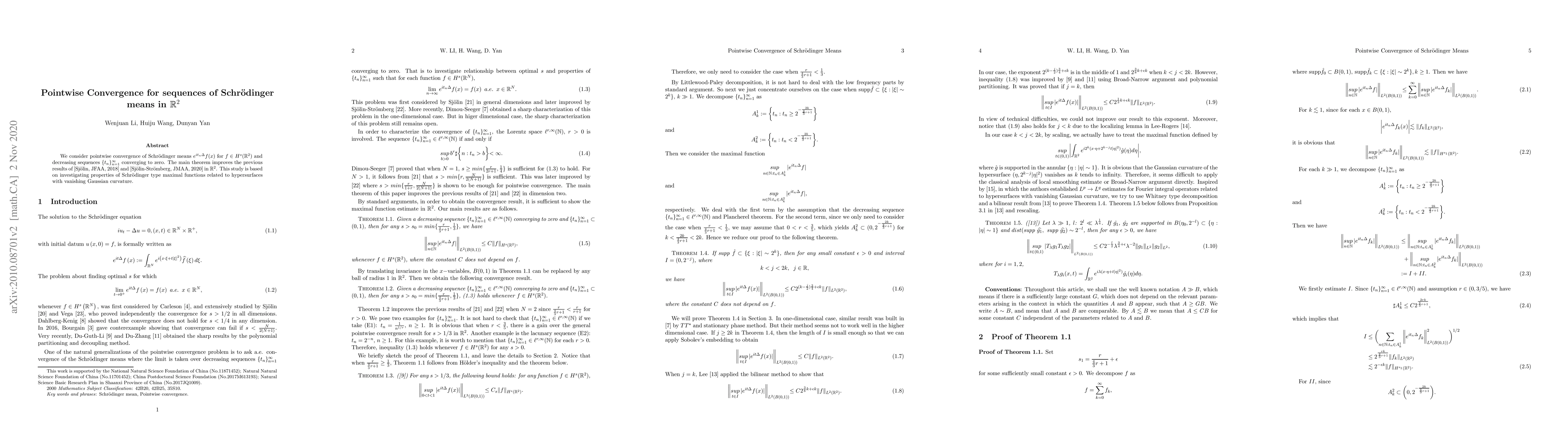 This paper investigates the pointwise convergence of Schrödinger means $e^{it_{n}\Delta}f(x)$ for functions $f \in H^{s}(\mathbb{R}^{2})$ and sequences $\{t_{n}\}$ converging to zero, improving prior results in $\mathbb{R}^{2}$ and utilizing properties of Schrödinger maximal functions related to hypersurfaces with vanishing Gaussian curvature.