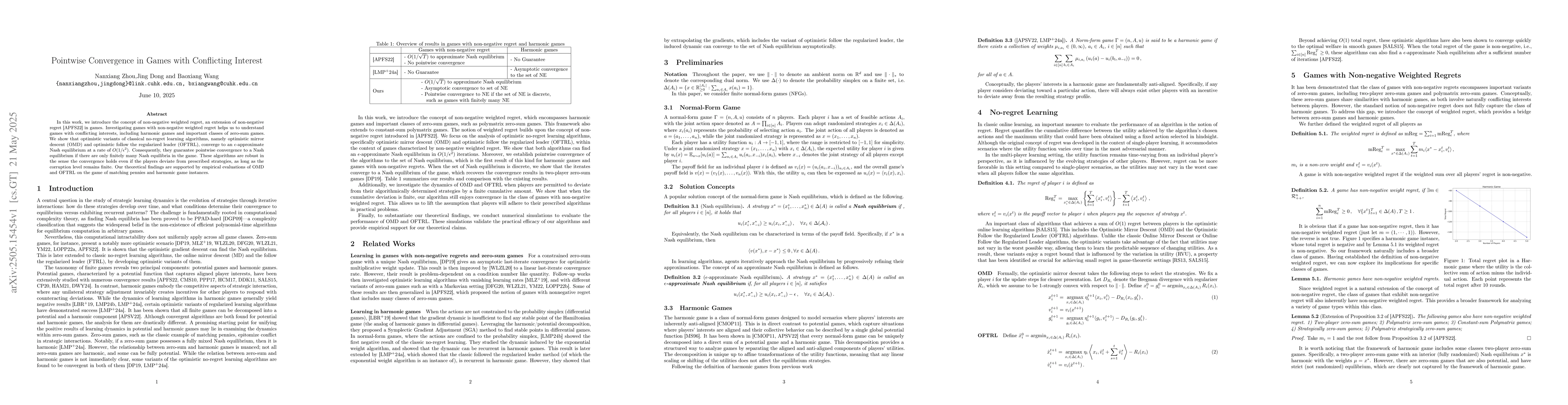 This research contributes to understanding games with conflicting interests by providing theoretical foundations for pointwise convergence to Nash equilibria using novel algorithmic approaches, which can be applied to various game types including harmonic games and zero-sum games.