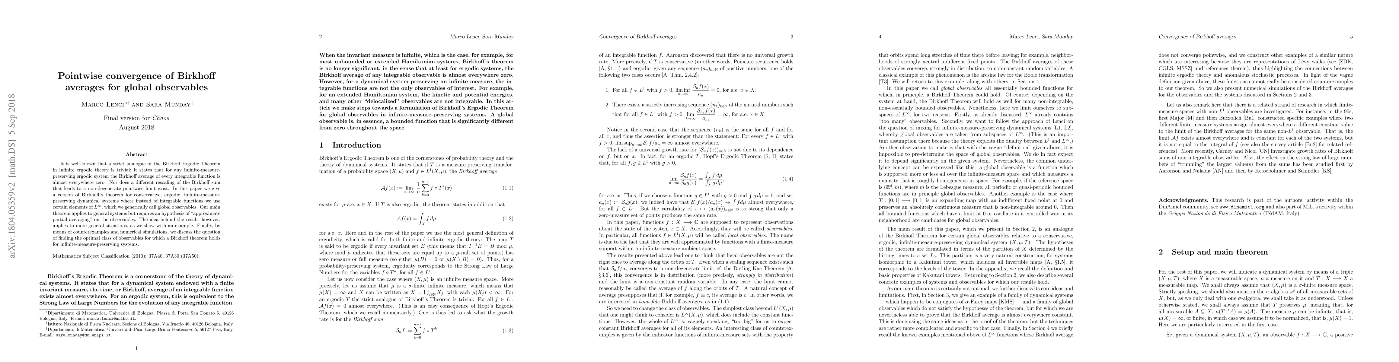 Researchers developed a version of Birkhoff's theorem for conservative systems using global observables, finding pointwise convergence under the assumption of approximate partial averaging, with implications for optimal classes of observables.