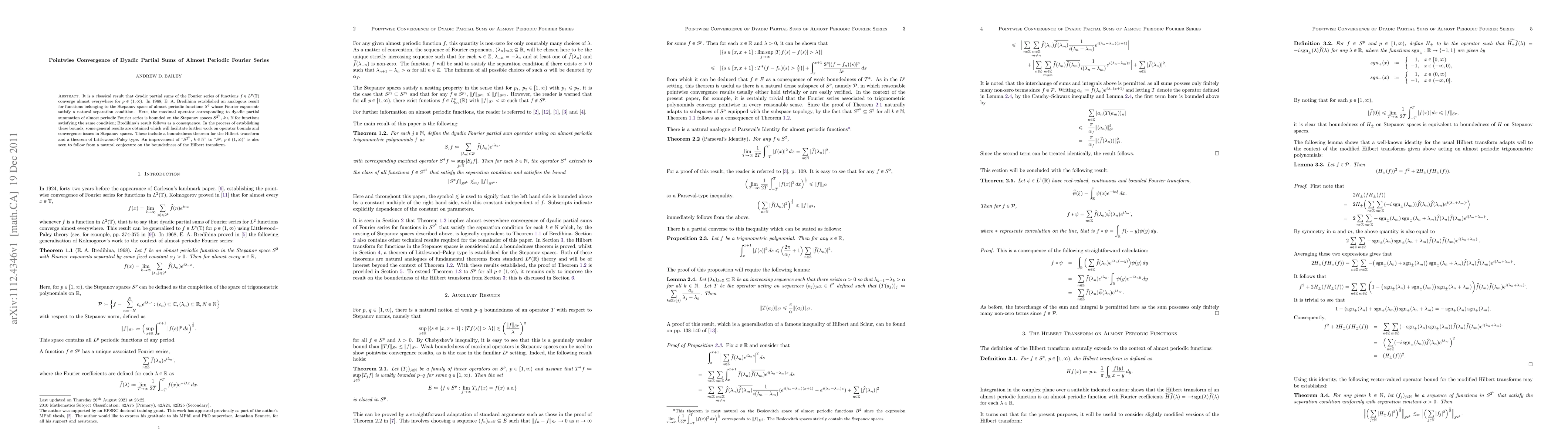 It is a classical result that dyadic partial sums of the Fourier series of functions $f \in L^p(\mathbb{T})$ converge almost everywhere for $p \in (1, \infty)$. In 1968, E. A. Bredihina established an analogous result for functions belonging to the Stepanov space of almost periodic functions $S^2$ whose Fourier exponents satisfy a natural separation condition. Here, the maximal operator corresponding to dyadic partial summation of almost periodic Fourier series is bounded on the Stepanov spaces $S^{2^k}$, $k \in \mathbb{N}$ for functions satisfying the same condition; Bredihina's result follows as a consequence. In the process of establishing these bounds, some general results are obtained which will facilitate further work on operator bounds and convergence issues in Stepanov spaces. These include a boundedness theorem for the Hilbert transform and a theorem of Littlewood--Paley type. An improvement of "$S^{2^k}$, $k \in \mathbb{N}$" to "$S^p$, $p \in (1, \infty)$" is also seen to follow from a natural conjecture on the boundedness of the Hilbert transform.