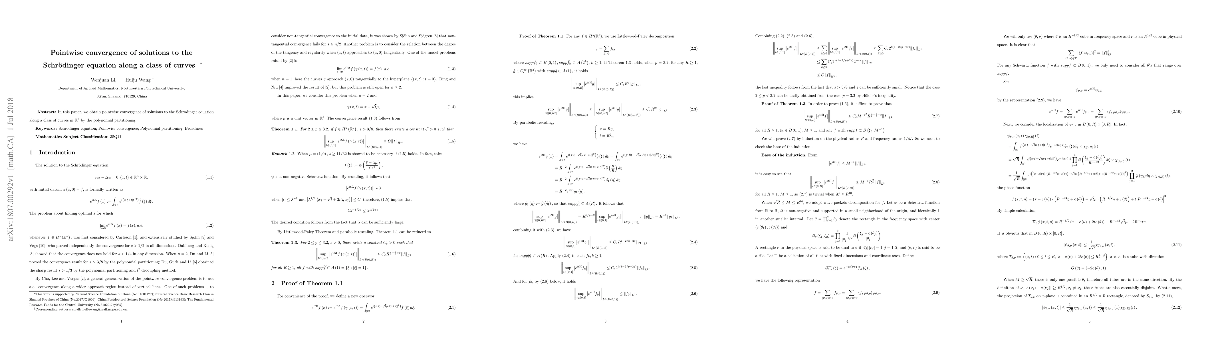 Summary: This paper demonstrates pointwise convergence of solutions to the Schrödinger equation along a specified class of curves in $\mathbb{R}^{2}$ using polynomial partitioning techniques. The method provides a robust framework for analyzing the behavior of Schrödinger solutions along these curves.