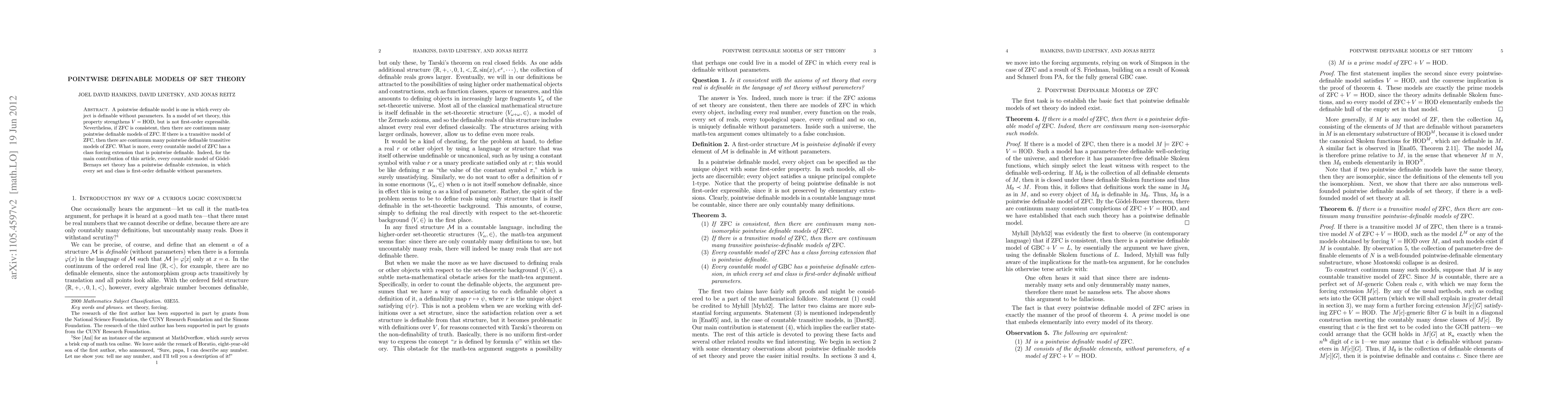 This paper explores pointwise definable models of set theory, where every object is definable without parameters, and demonstrates that such models exist in abundance under ZFC. The key contribution is the construction of pointwise definable extensions of countable models of Godel-Bernays set theory.