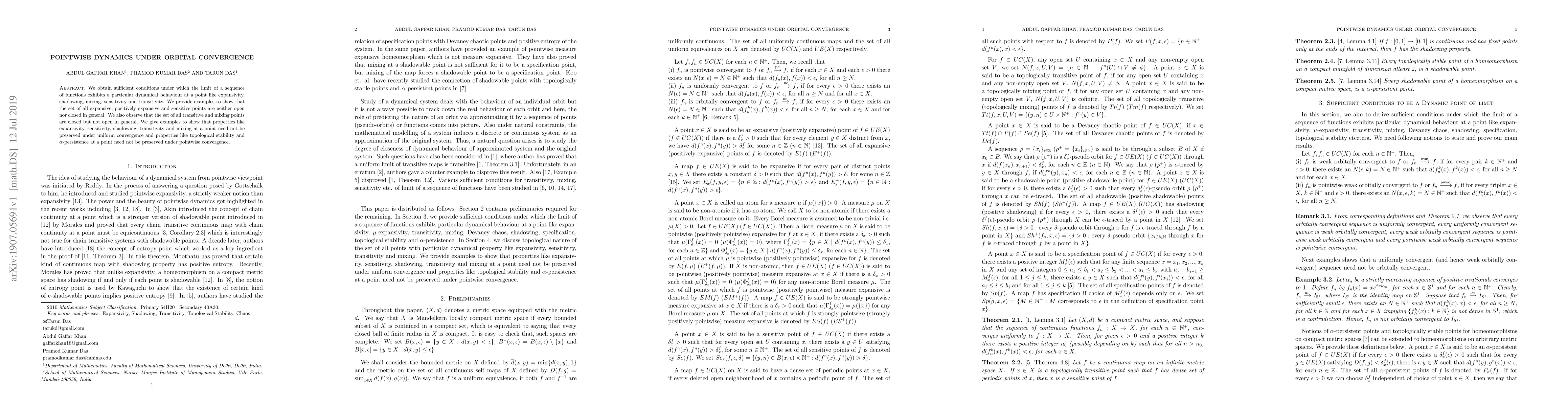 We obtain sufficient conditions under which the limit of a sequence of functions exhibits a particular dynamical behaviour at a point like expansivity, shadowing, mixing, sensitivity and transitivity. We provide examples to show that the set of all expansive, positively expansive and sensitive points are neither open nor closed in general. We also observe that the set of all transitive and mixing points are closed but not open in general. We give examples to show that properties like expansivity, sensitivity, shadowing, transitivity and mixing at a point need not be preserved under uniform convergence and properties like topological stability and $\alpha$-persistence at a point need not be preserved under pointwise convergence.