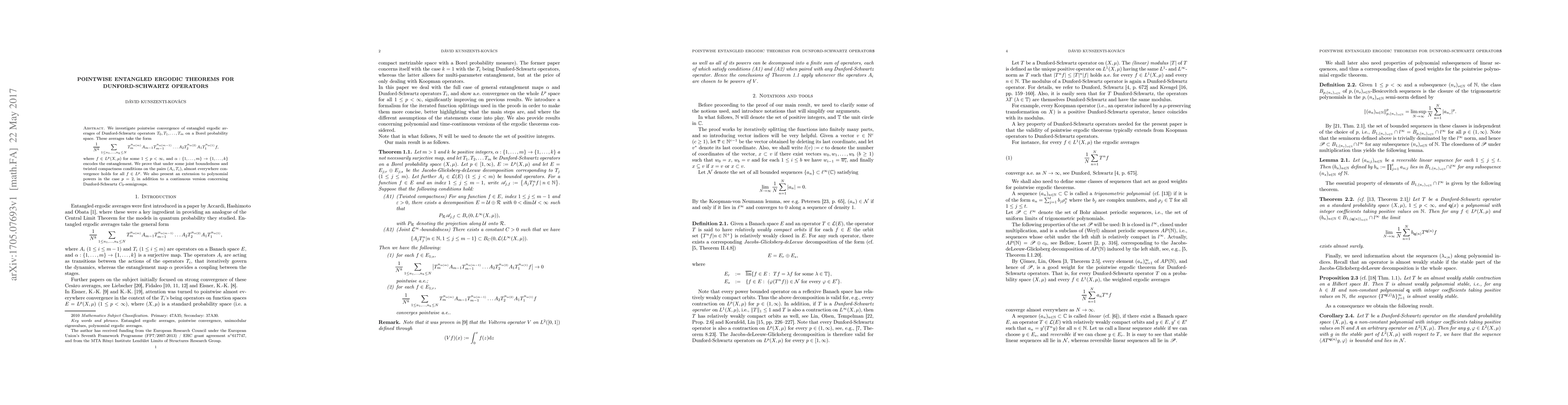 We investigate pointwise convergence of entangled ergodic averages of Dunford-Schwartz operators $T_0,T_1,\ldots, T_m$ on a Borel probability space. These averages take the form \[ \frac{1}{N^k}\sum_{1\leq n_1,\ldots, n_k\leq N} T_m^{n_{\alpha(m)}}A_{m-1}T^{n_{\alpha(m-1)}}_{m-1}\ldots A_2T_2^{n_{\alpha(2)}}A_1T_1^{n_{\alpha(1)}} f, \] where $f\in L^p(X,\mu)$ for some $1\leq p<\infty$, and $\alpha:\left\{1,\ldots,m\right\}\to\left\{1,\ldots,k\right\}$ encodes the entanglement. We prove that under some joint boundedness and twisted compactness conditions on the pairs $(A_i,T_i)$, almost everywhere convergence holds for all $f\in L^p$. We also present an extension to polynomial powers in the case $p=2$, in addition to a continuous version concerning Dunford-Schwartz $C_0$-semigroups.