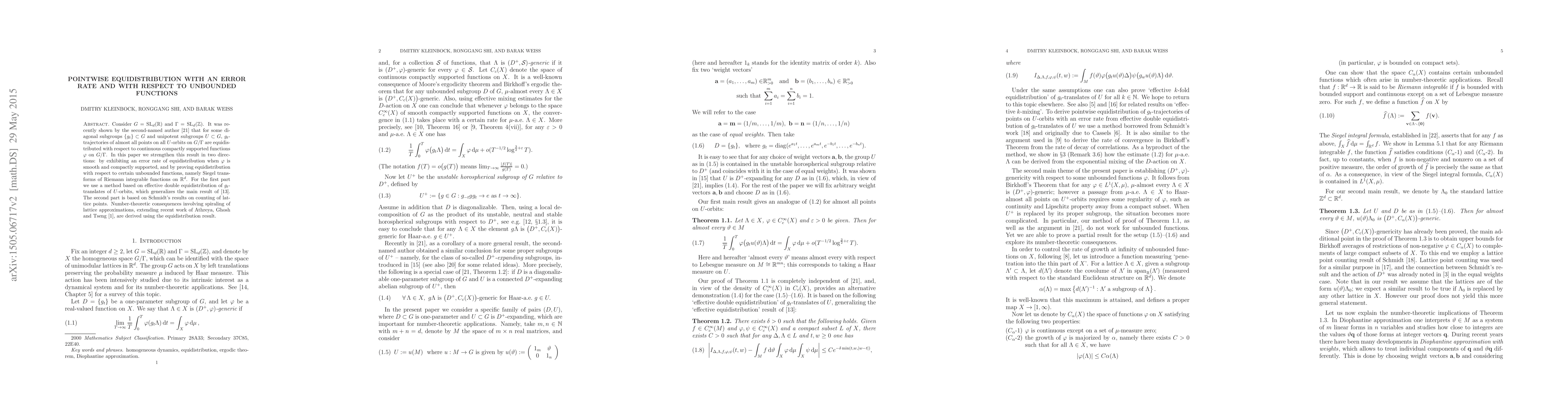 Research proves pointwise equidistribution of trajectories with respect to unbounded functions, showing that almost all points on orbits are distributed evenly for certain types of functions.