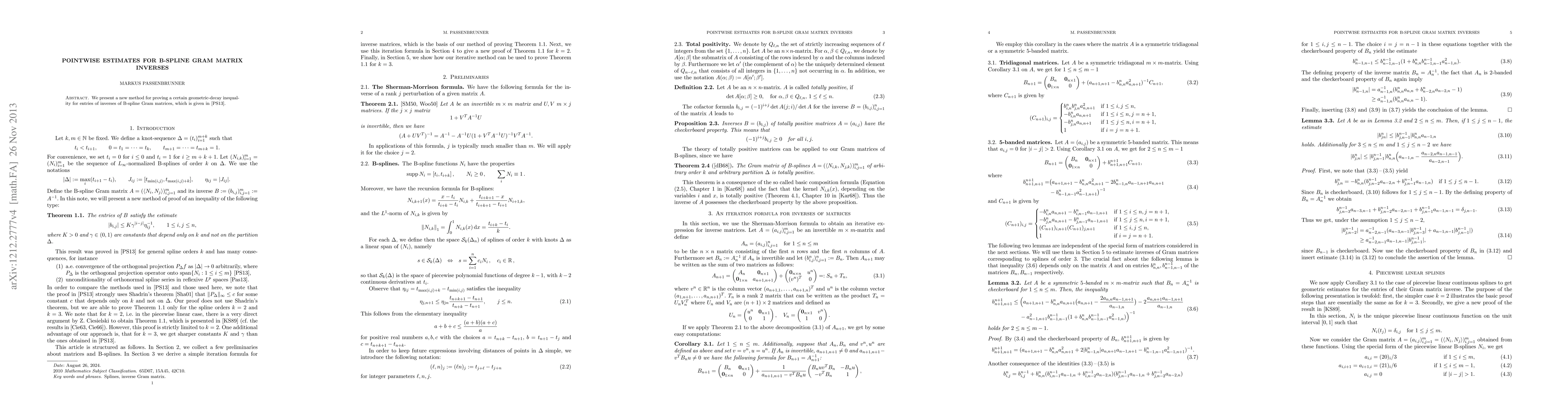 We present a new method for proving a certain geometric-decay inequality for entries of inverses of B-spline Gram matrices, which is given in [Passenbrunner,Shadrin 2013, arXiv:1308.4824].