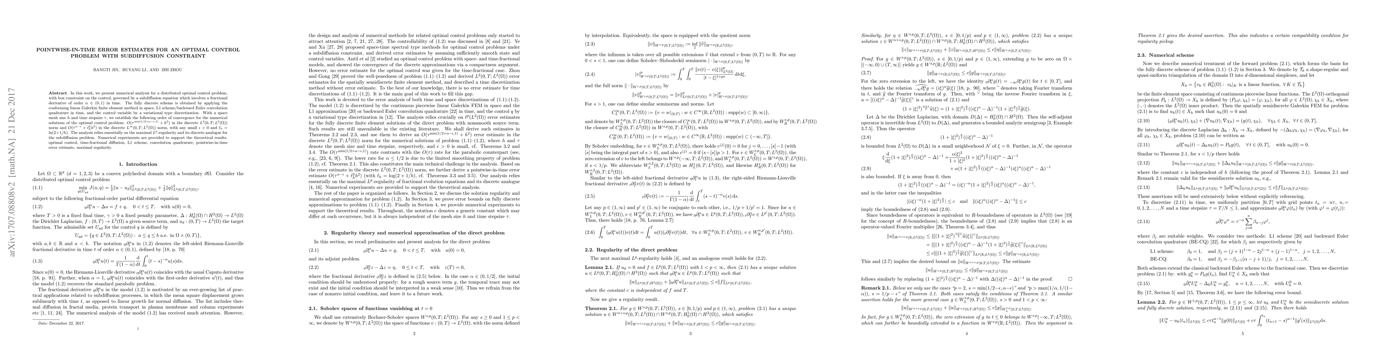 This research presents a numerical analysis for an optimal control problem involving a subdiffusion equation with a fractional derivative in time. Utilizing a specific discretization method, it establishes convergence rates for the numerical solutions in both $L^2(0,T;L^2(Omega))$ and $L^infty(0,T;L^2(Omega))$ norms, supported by numerical experiments. The findings contribute to the understanding and solution of complex control problems under subdiffusion constraints.