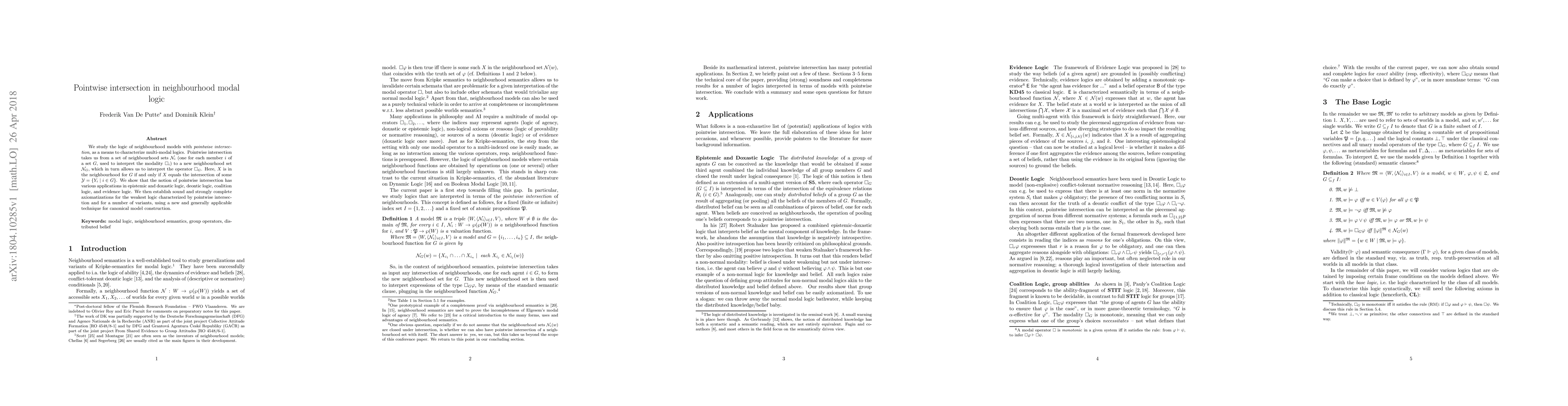 We study the logic of neighbourhood models with pointwise intersection, as a means to characterize multi-modal logics. Pointwise intersection takes us from a set of neighbourhood sets $\mathcal{N}_i$ (one for each member $i$ of a set $G$, used to interpret the modality $\square_i$) to a new neighbourhood set $\mathcal{N}_G$, which in turn allows us to interpret the operator $\square_G$. Here, $X$ is in the neighbourhood for $G$ if and only if $X$ equals the intersection of some $\mathcal{Y} = \{Y_i \mid i\in G\}$. We show that the notion of pointwise intersection has various applications in epistemic and doxastic logic, deontic logic, coalition logic, and evidence logic. We then establish sound and strongly complete axiomatizations for the weakest logic characterized by pointwise intersection and for a number of variants, using a new and generally applicable technique for canonical model construction.
