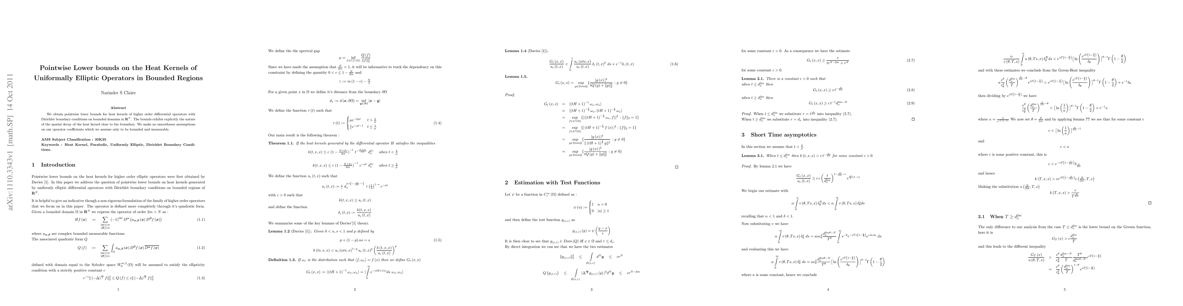This paper establishes pointwise lower bounds for heat kernels of uniformly elliptic differential operators on bounded domains, revealing the spatial decay near the boundary without requiring smoothness of the operator coefficients, only bounded and measurable conditions.