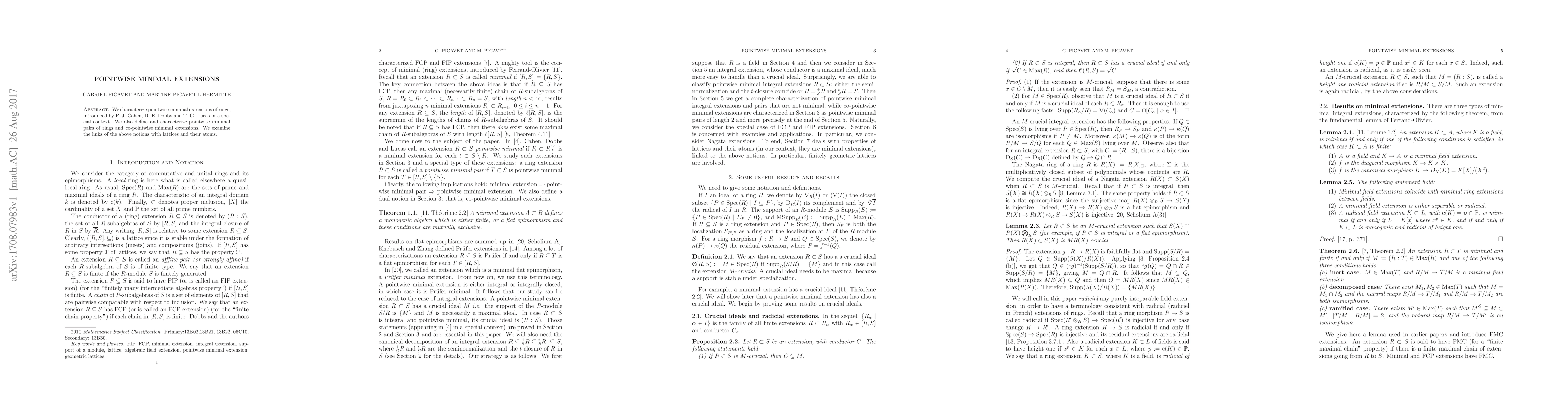 Summary: This paper provides a detailed characterization of pointwise minimal extensions of rings, a concept introduced by Cahen, Dobbs, and Lucas, to enhance understanding of their properties and implications in ring theory.