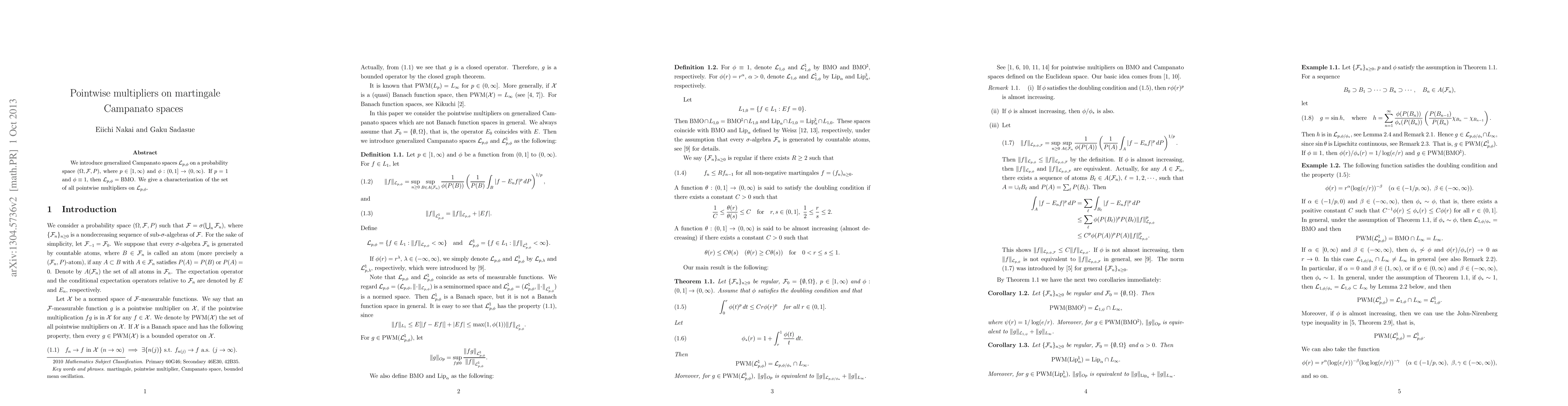 The paper introduces and analyzes generalized martingale Campanato spaces, providing a characterization of pointwise multipliers on these spaces.