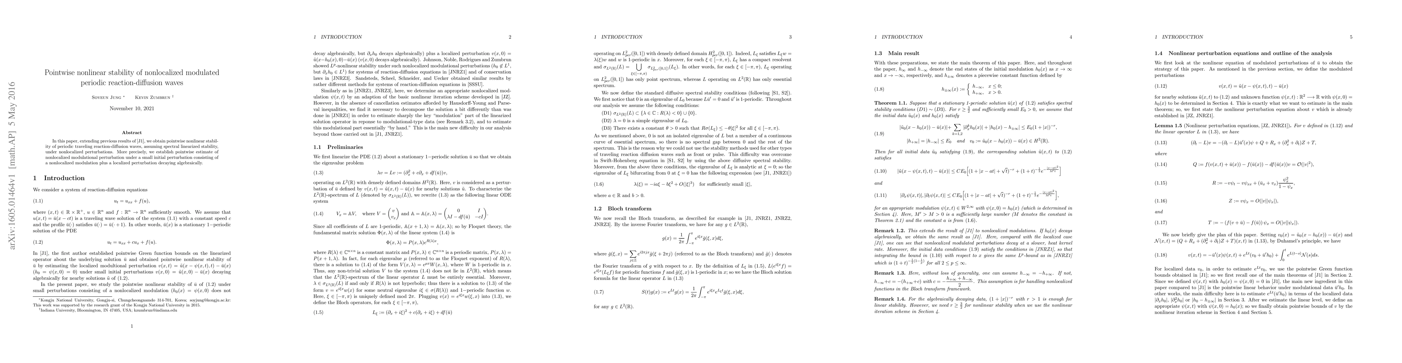 This paper extends previous results to establish pointwise nonlinear stability of periodic traveling reaction-diffusion waves under nonlocalized perturbations, assuming spectral linearized stability. It provides a pointwise estimate for nonlocalized modulational perturbations with a small initial condition comprising a nonlocalized modulation and a localized perturbation.
