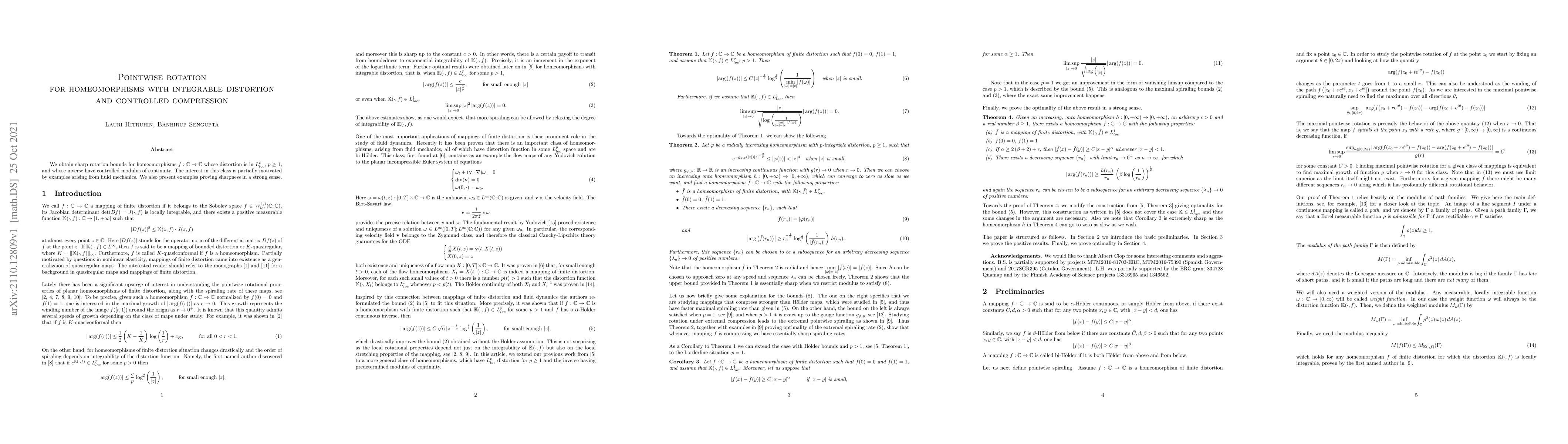 This paper establishes precise rotation bounds for homeomorphisms of the complex plane with locally integrable distortion and inverses with controlled continuity, motivated by fluid mechanics applications. The authors also demonstrate the sharpness of their results through specific examples.