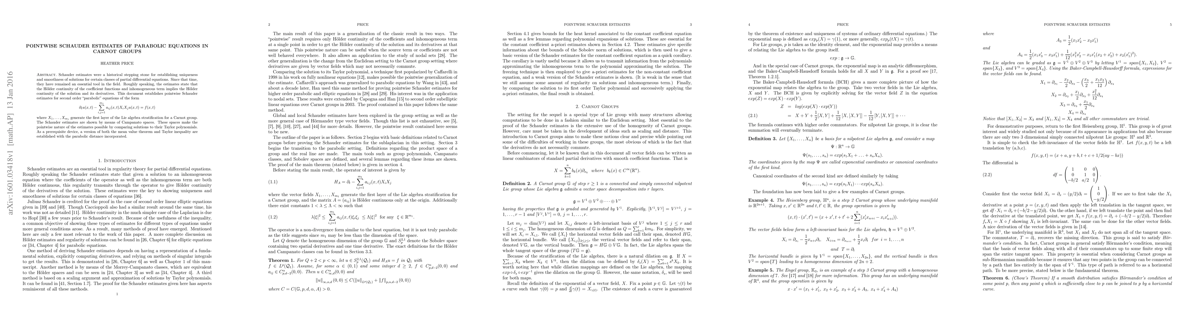 Schauder estimates were a historical stepping stone for establishing uniqueness and smoothness of solutions for certain classes of partial differential equations. Since that time, they have remained an essential tool in the field. Roughly speaking, the estimates state that the H\"older continuity of the coefficient functions and inhomogeneous term implies the H\"older continuity of the solution and its derivatives. This document establishes pointwise Schauder estimates for second order "parabolic" equations of the form $$\partial_{t}u(x,t)-\sum_{i,j=1}^{m_1} a_{ij}(x,t)X_iX_ju(x,t)=f(x,t)$$ where $X_{1},\ldots ,X_{m_1}$ generate the first layer of the Lie algebra stratification for a Carnot group. The Schauder estimates are shown by means of Campanato spaces. These spaces make the pointwise nature of the estimates possible by comparing solutions to their Taylor polynomials. As a prerequisite device, a version of both the mean value theorem and Taylor inequality are established with the parabolic distance incorporated.