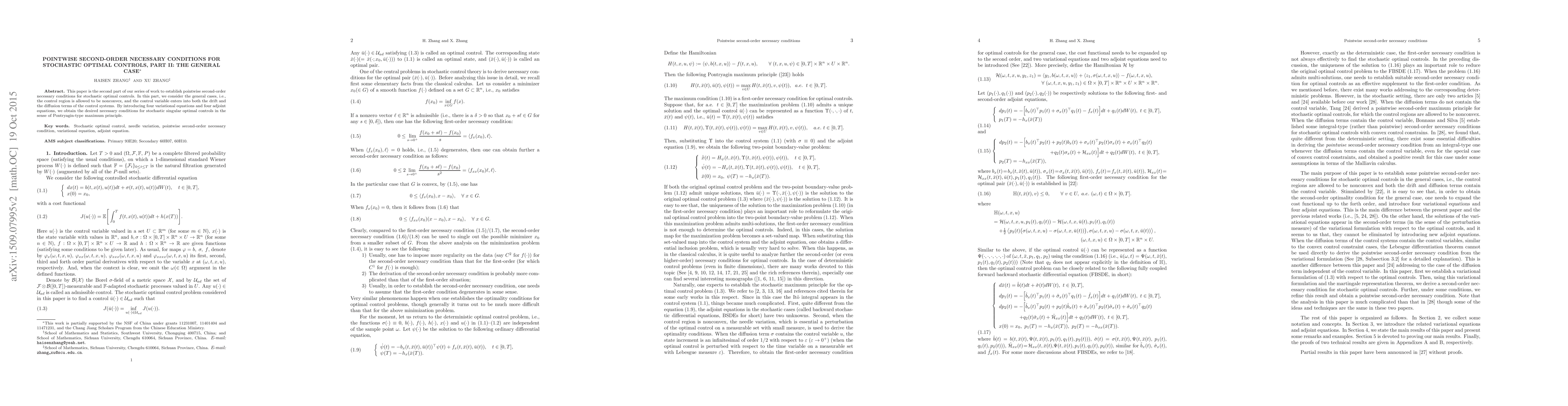 This paper extends pointwise second-order necessary conditions for stochastic optimal controls to general cases with nonconvex control regions. It introduces four variational and four adjoint equations to derive necessary conditions for stochastic singular optimal controls under a Pontryagin-type maximum principle.