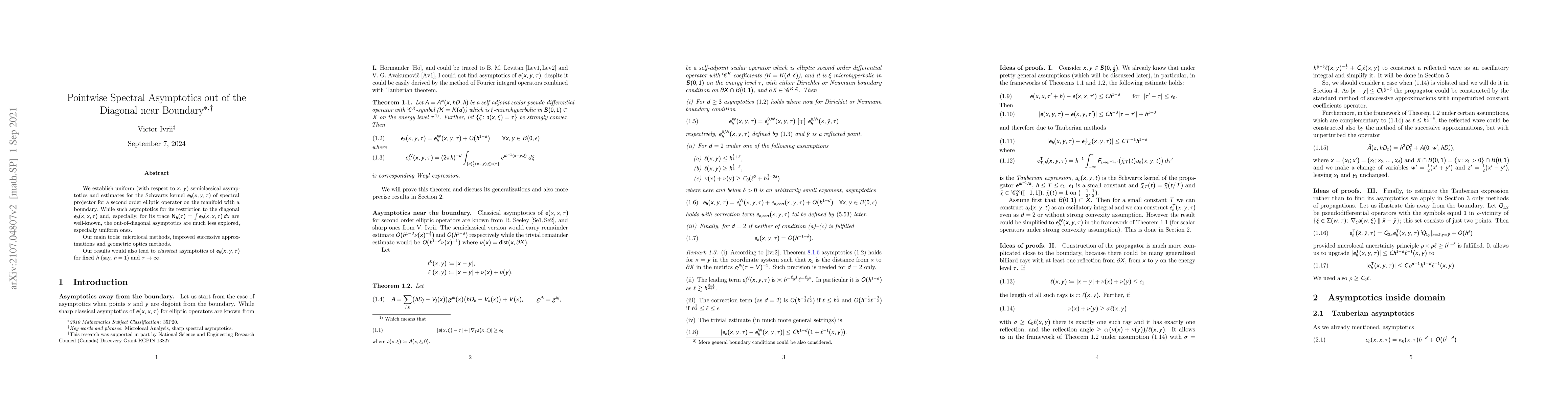 We establish semiclassical asymptotics and estimates for the Schwartz kernel $e_h(x,y;\tau)$ of spectral projector for a second order elliptic operator on the manifold with a boundary. While such asymptotics for its restriction to the diagonal $e_h(x,x,\tau)$ and, especially, for its trace $\mathsf{N}_h(\tau)= \int e_h(x,x,\tau)\,dx$ are well-known, the out-of-diagonal asymptotics are much less explored. Our main tools: microlocal methods, improved successive approximations and geometric optics methods. Our results would also lead to classical asymptotics of $e_h(x,y,\tau)$ for fixed $h$ (say, $h=1$) and $\tau\to \infty$.