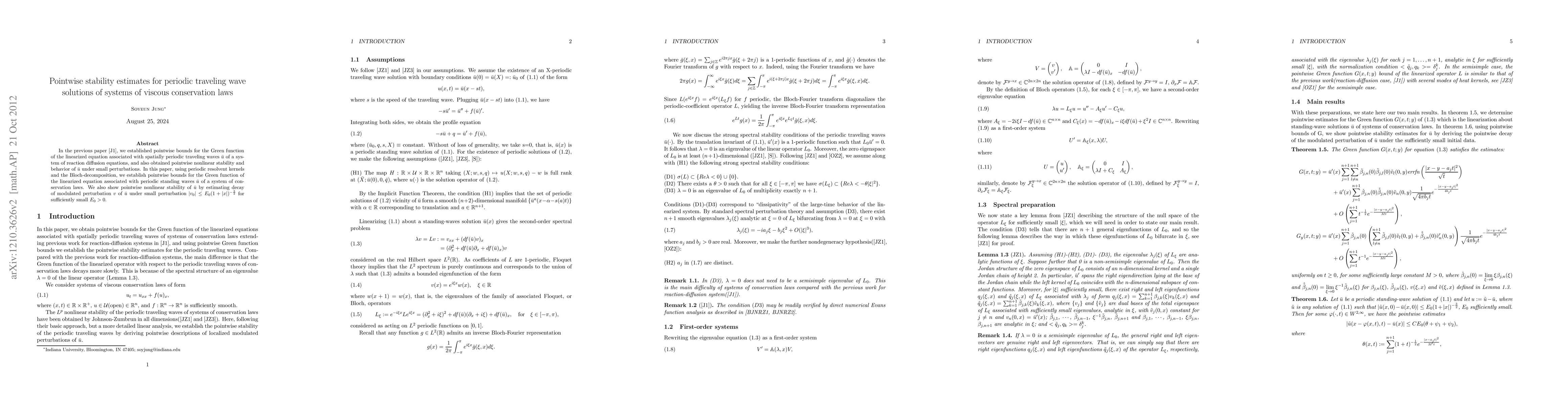 This paper establishes pointwise stability estimates for periodic standing wave solutions of systems of viscous conservation laws using periodic resolvent kernels and Bloch-decomposition. It shows pointwise nonlinear stability by estimating the decay of modulated perturbations under small initial conditions.