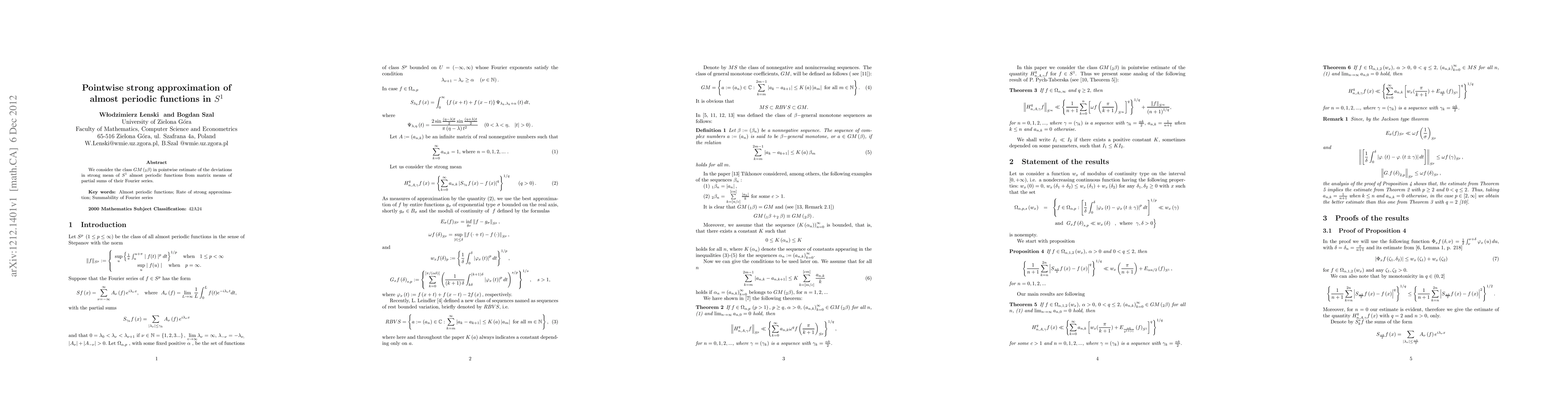 The paper presents a detailed analysis of pointwise strong approximation for almost periodic functions in S^1, introducing new techniques for estimating deviations in strong mean.