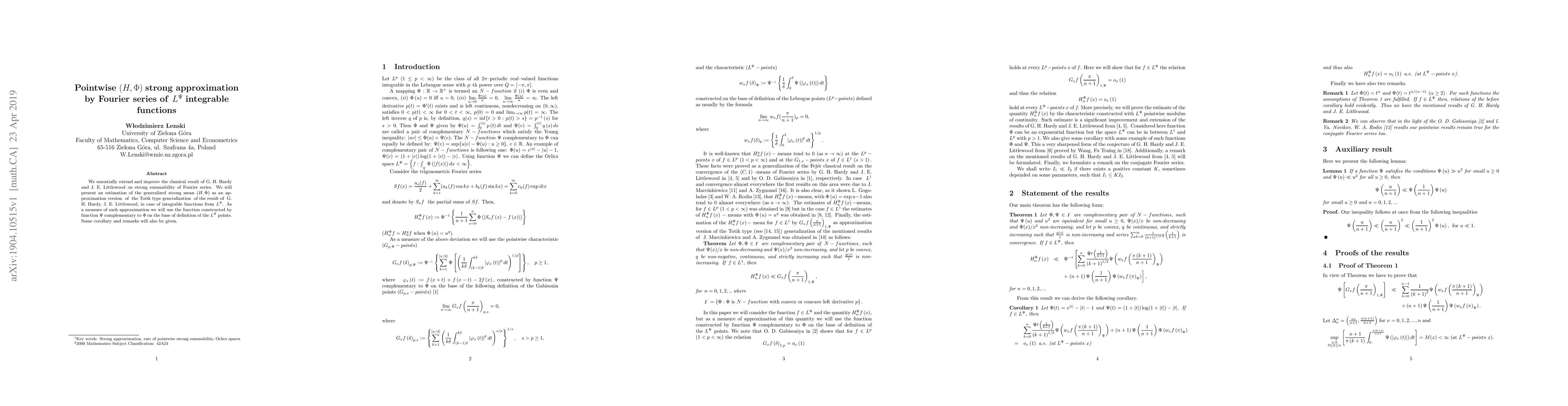 We essentially extend and improve the classical result of G. H. Hardy and J. E. Littlewood on strong summability of Fourier series. We will present an estimation of the generalized strong mean (H; Phi) as an approximation version of the Totik type generalization of the result of G. H. Hardy, J. E. Littlewood, in case of integrable functions from L^{Psi}. As a measure of such approximation we will use the function constructed by function Psi complementary to Phi on the base of defnition of the L^{Psi} points. Some corollary and remarks will also be given.
