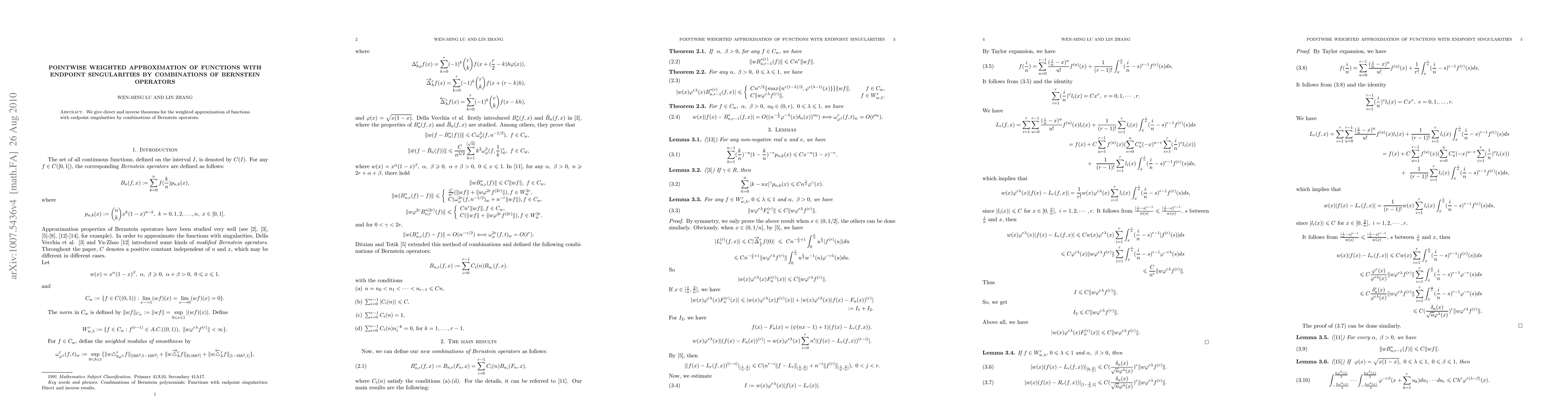 Summary: This paper presents direct and inverse theorems for the weighted approximation of functions with endpoint singularities using combinations of Bernstein operators, providing a robust framework for handling such singularities.