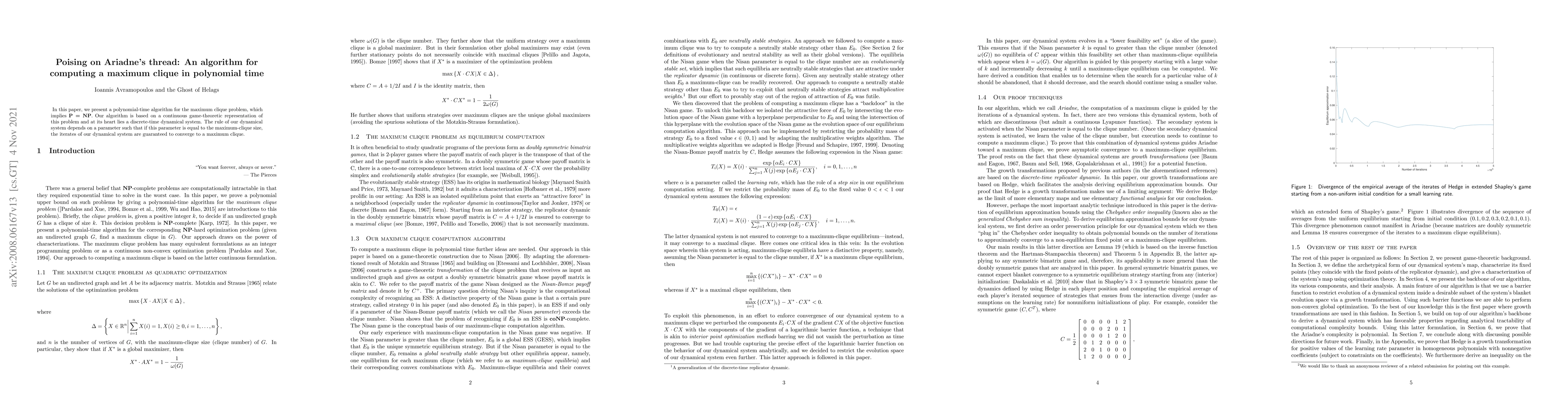 Summary: This paper introduces a polynomial-time algorithm for solving the maximum clique problem, suggesting a potential resolution to P vs NP. The algorithm leverages a game-theoretic approach and a discrete-time dynamical system, ensuring convergence to a maximum clique when a specific parameter matches the clique size.