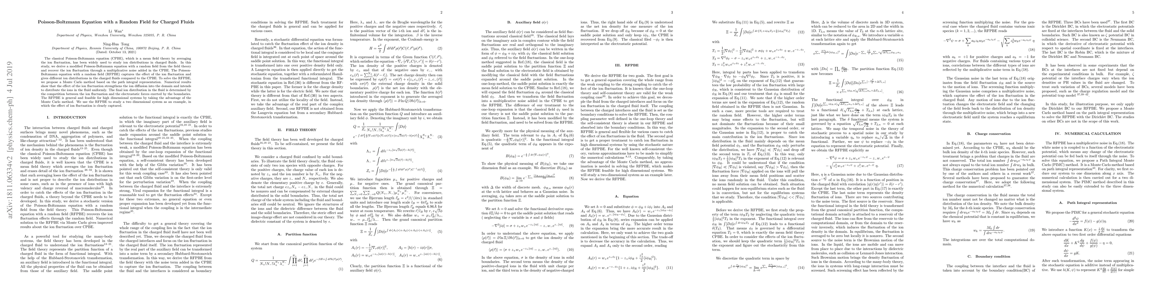 This paper modifies the classical Poisson-Boltzmann equation to incorporate a random field, capturing ion fluctuations in charged fluids. The proposed Poisson-Boltzmann equation with a random field (RFPBE) and a Monte Carlo method reveal enhanced ion diffusion and uniform distribution due to ion fluctuations, highlighting the competition between these fluctuations and electrostatic boundary forces.