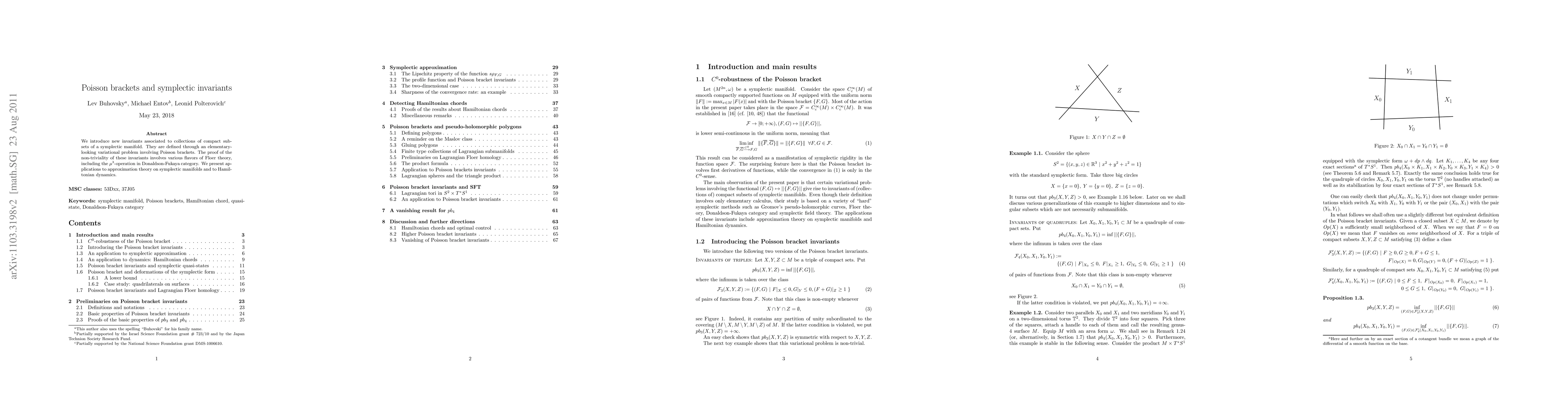 We introduce new invariants associated to collections of compact subsets of a symplectic manifold. They are defined through an elementary-looking variational problem involving Poisson brackets. The proof of the non-triviality of these invariants involves various flavors of Floer theory. We present applications to approximation theory on symplectic manifolds and to Hamiltonian dynamics.