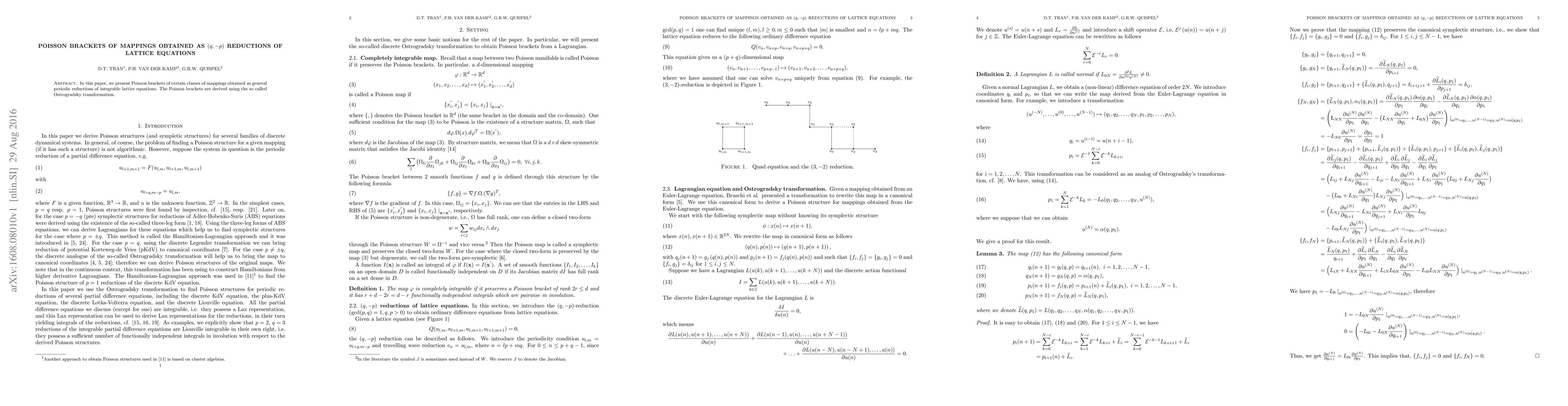 This paper derives Poisson brackets for mappings resulting from periodic reductions of integrable lattice equations, employing the Ostrogradsky transformation to achieve the results. The study focuses on the structure and properties of these brackets in the context of integrable systems.