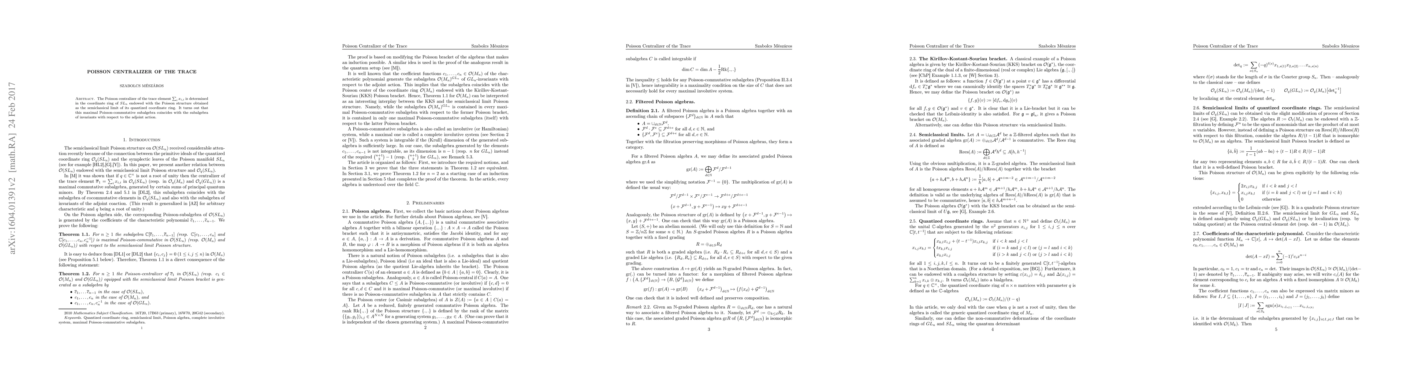 The paper establishes a connection between the Poisson centralizer of the trace and the subalgebra of invariants under the adjoint action, providing an explicit description of the Poisson structure on O(Mn).
