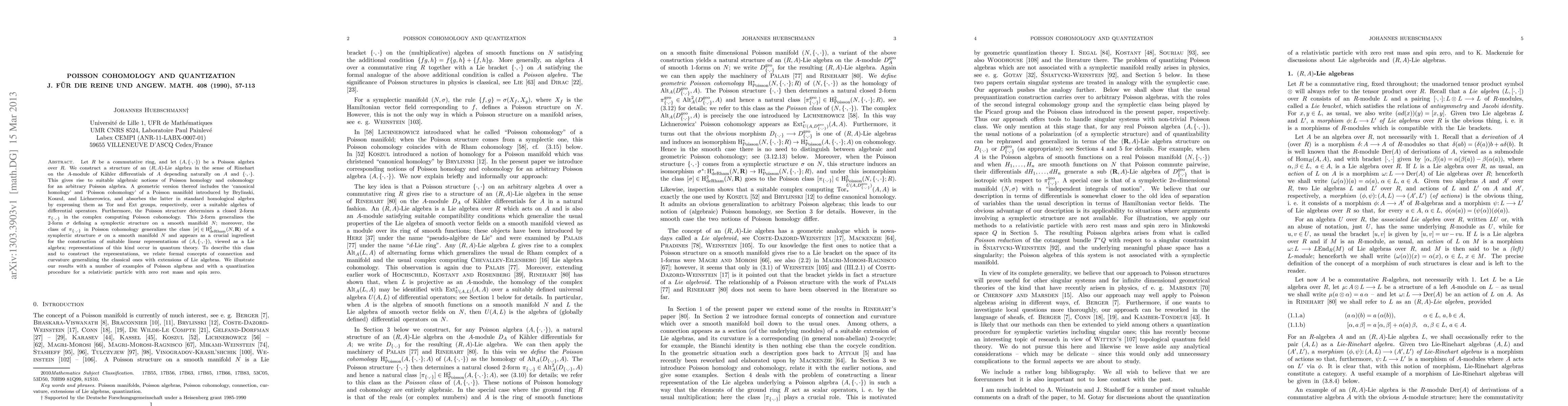 Let R be a commutative ring, and let A be a Poisson algebra over R. We construct an (R,A)-Lie algebra structure, in the sense of Rinehart, on the A-module of K\"ahler differentials of A depending naturally on A and the Poisson bracket. This gives rise to suitable algebraic notions of Poisson homology and cohomology for an arbitrary Poisson algebra. A geometric version thereof includes the canonical homology and Poisson cohomology of a Poisson manifold introduced by Brylinski, Koszul, and Lichnerowicz, and absorbes the latter in standard homological algebra by expressing them as Tor and Ext groups, respectively, over a suitable algebra of differential operators. Furthermore, the Poisson structure determines a closed 2-form in the complex computing Poisson cohomology. This 2-form generalizes the 2-form defining a symplectic structure on a smooth manifold; moreover, the class of that 2-form in Poisson cohomology generalizes the class in de Rham cohomology of a symplectic structure on a smooth manifold and appears as a crucial ingredient for the construction of suitable linear representations of A, viewed as a Lie algebra; representations of this kind occur in quantum theory. To describe this class and to construct the representations, we relate formal concepts of connection and curvature generalizing the classical ones with extensions of Lie algebras. We illustrate our results with a number of examples of Poisson algebras and with a quantization procedure for a relativistic particle with zero rest mass and spin zero.