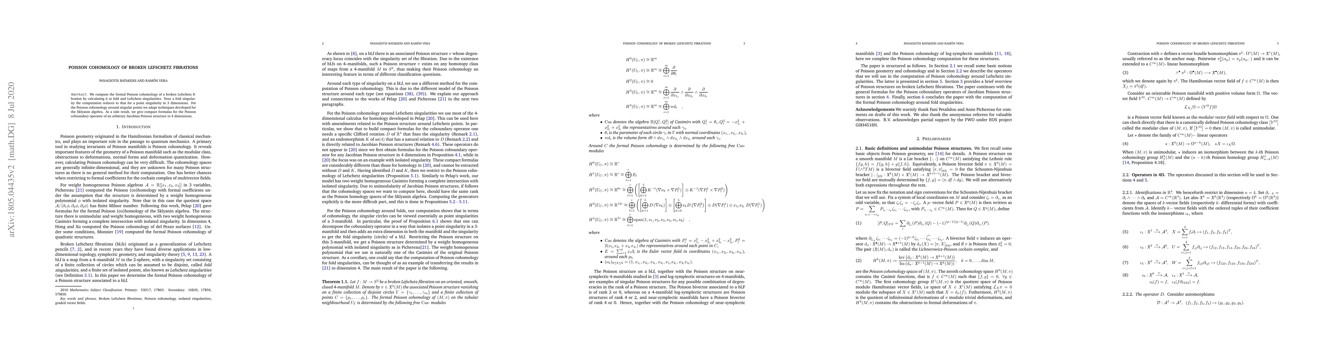 This paper computes the formal Poisson cohomology of broken Lefschetz fibrations, focusing on fold and Lefschetz singularities, and adapts Sklyanin algebra techniques for the analysis. It also provides compact formulas for the Poisson coboundary operator in 4-dimensional Jacobian Poisson structures.