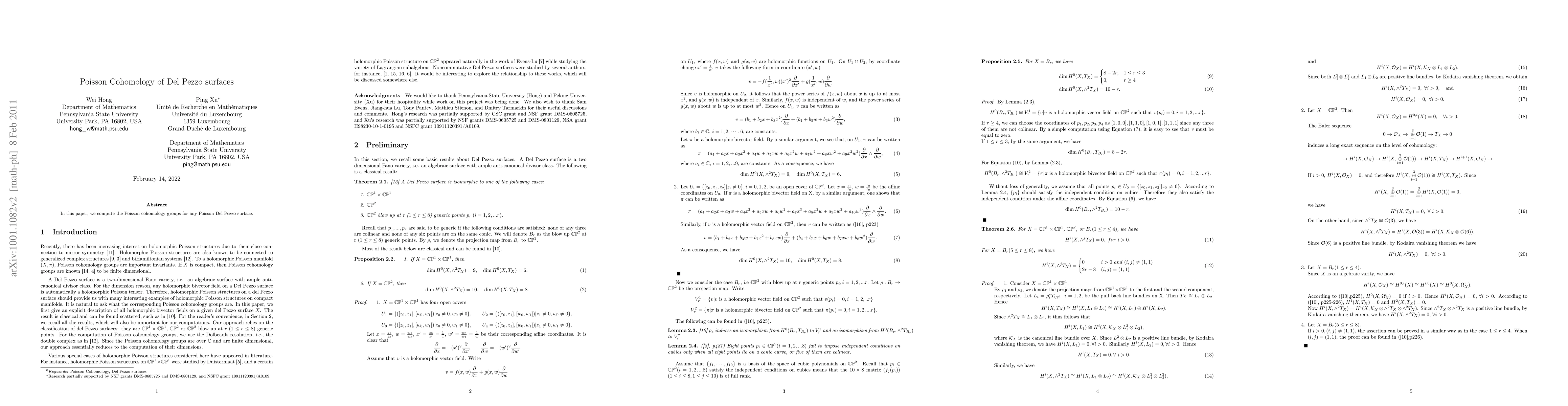In this note, we compute the Poisson cohomology groups for any Poisson Del Pezzo surface.