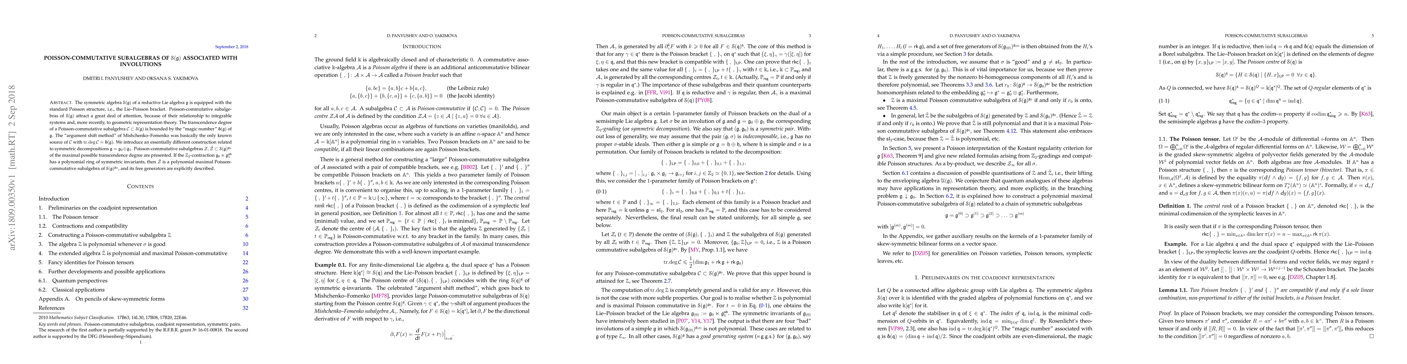 This paper investigates Poisson-commutative subalgebras of the symmetric algebra $S(\mathfrak g)$ associated with involutions in reductive Lie algebras $\mathfrak g$, showing a new construction via symmetric decompositions $\mathfrak g=\mathfrak g_0\oplus\mathfrak g_1$ that yields subalgebras $\mathcal Z,\tilde{\mathcal Z}$ with maximal transcendence degree and polynomial generators under certain conditions.