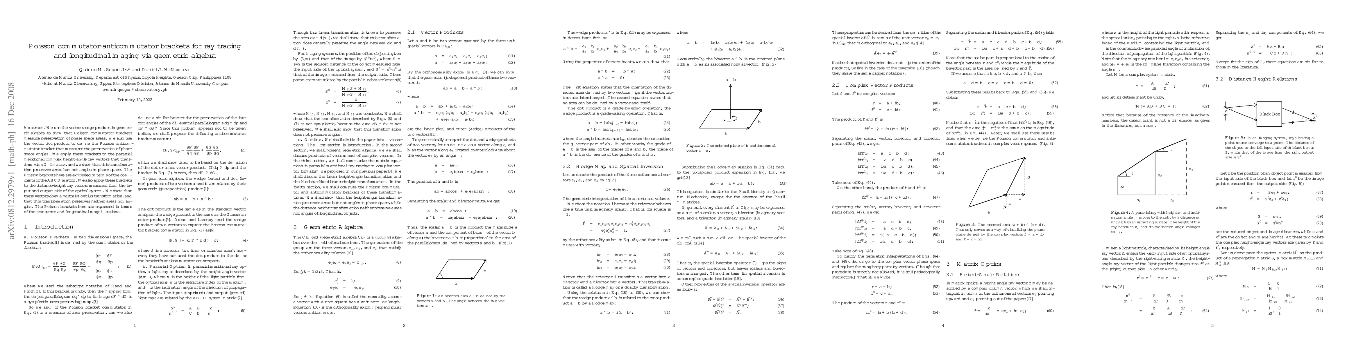 This paper utilizes geometric algebra to define Poisson commutator and anticommutator brackets, showing how they measure the preservation of phase space areas and angles, respectively. It applies these concepts to paraxial ray tracing, demonstrating area preservation but not angle preservation via ABCD matrix coefficients, and reveals that distance-height ray vectors follow a partial Möbius transformation that preserves neither.